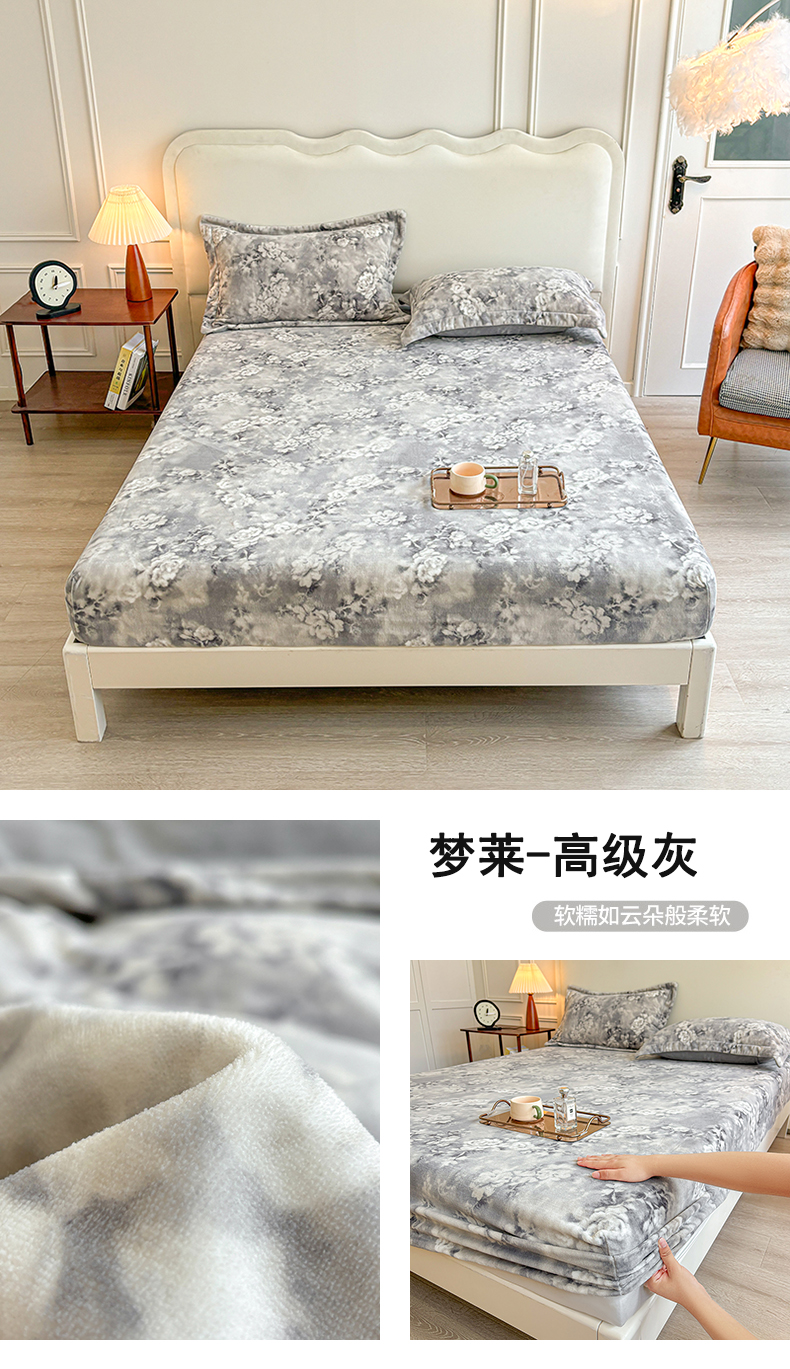 菡宝 2024新款8斤240g全消光牛奶绒系列单床笠 梦莱-高级灰