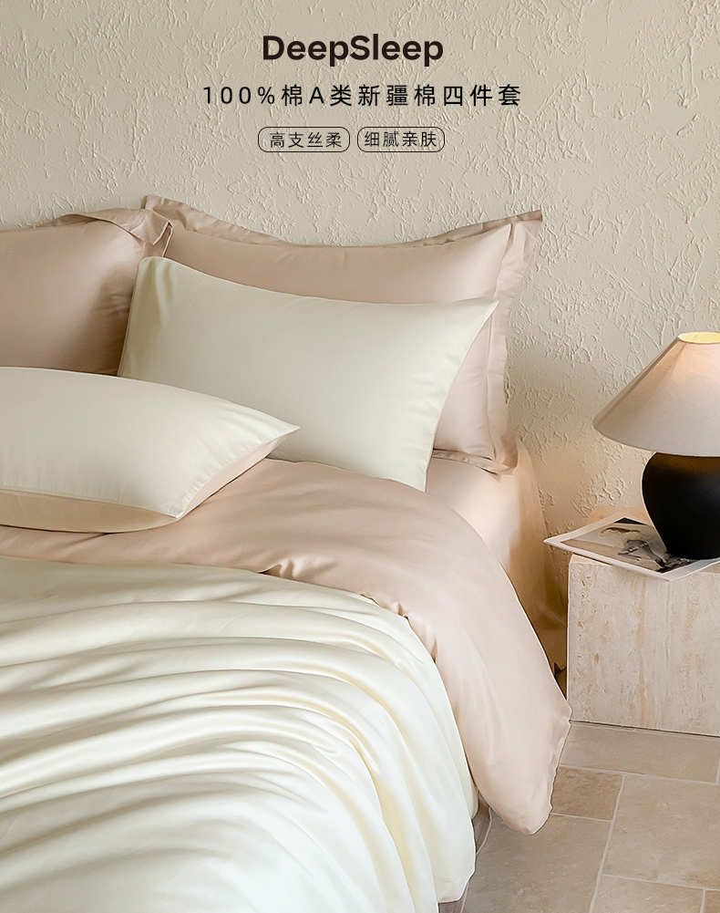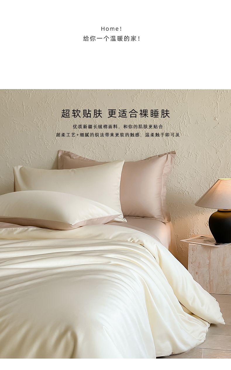 商品名称:猪先生 2024新款A类全棉高支高密纯棉单被套 奶昔白+浅香槟
