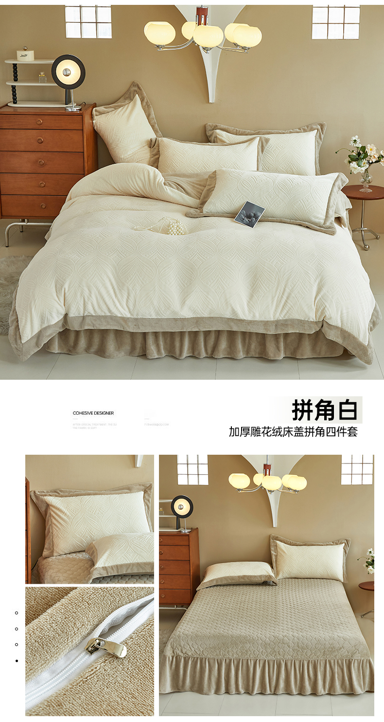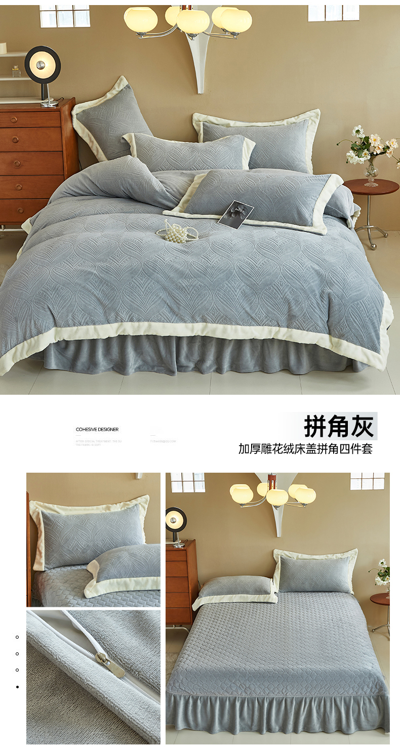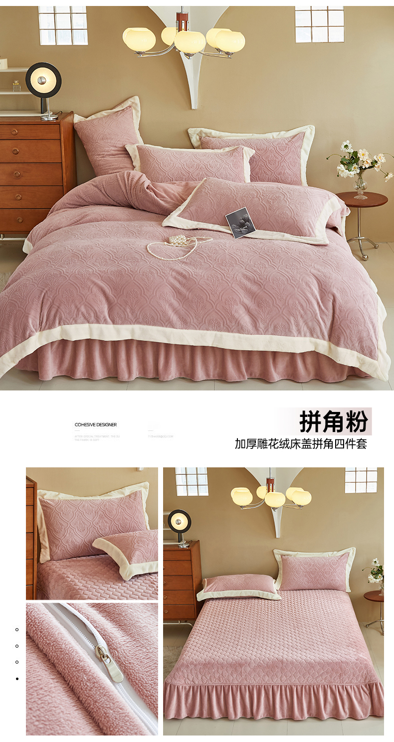 (总)舒梦琪家纺 2024新款雕花绒床盖拼角四件套11斤左右