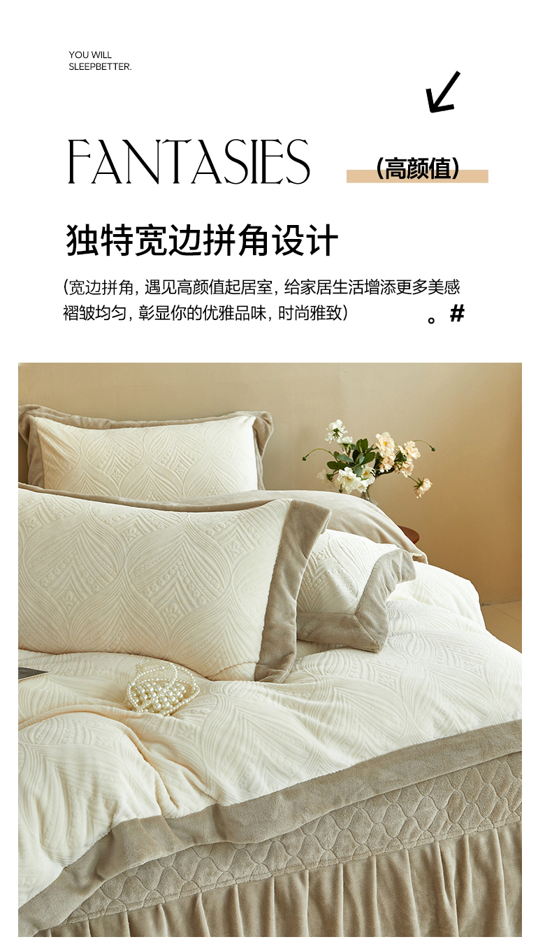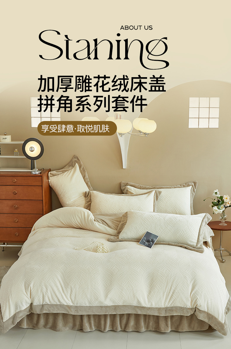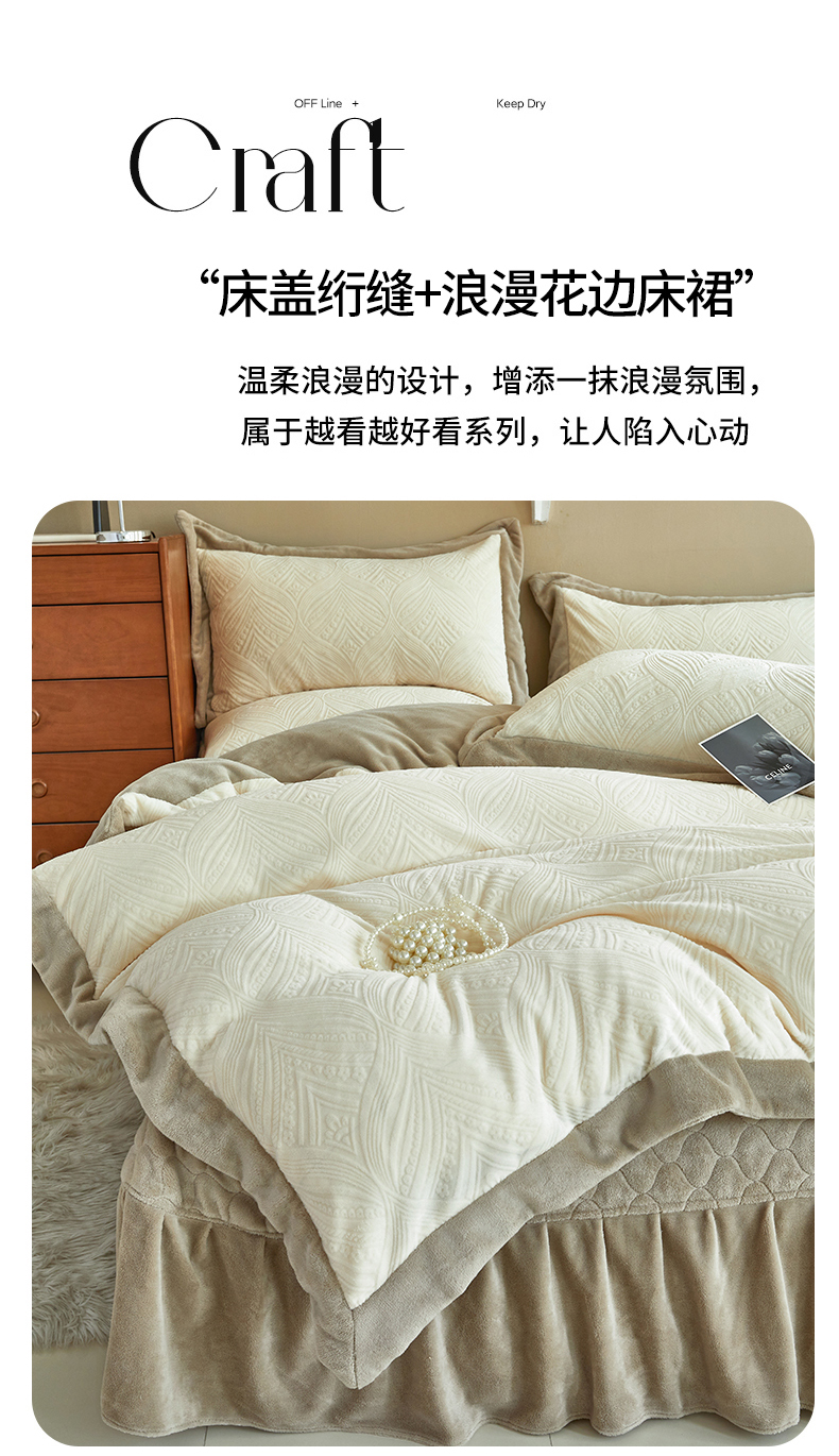(总)舒梦琪家纺 2024新款雕花绒床盖拼角四件套11斤左右