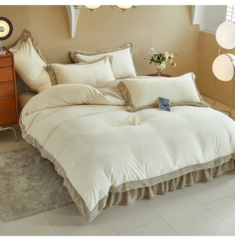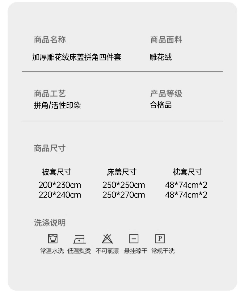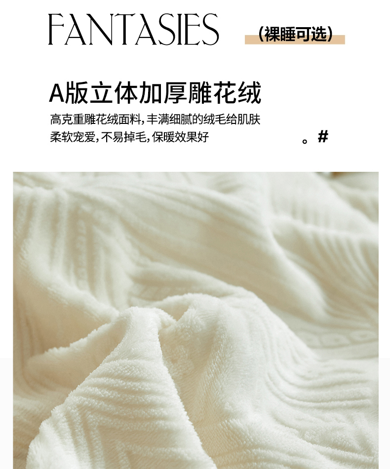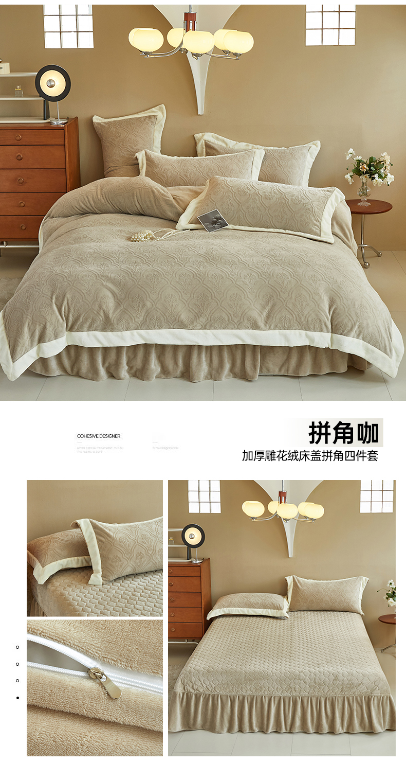 商品名称:(总)舒梦琪家纺 2024新款雕花绒床盖拼角四件套11斤左右