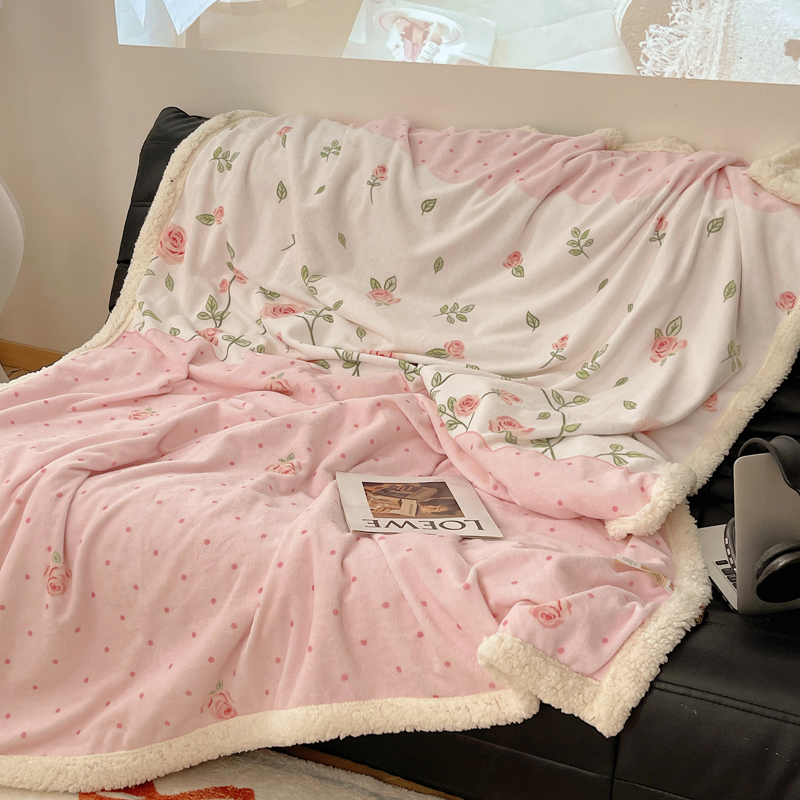 商品名称:顾里 2024新款韩系牛奶羊羔绒毯 玫瑰花园
