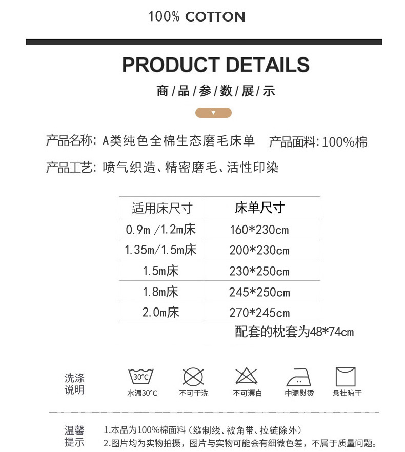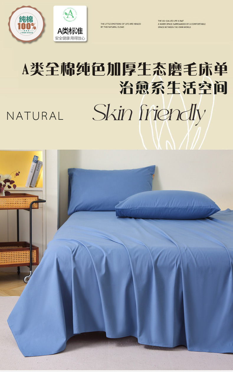 商品名称:晶缦家纺 2024新款全棉13376纯色喷气全棉磨毛单品床单 暖芸馨-靛青蓝
