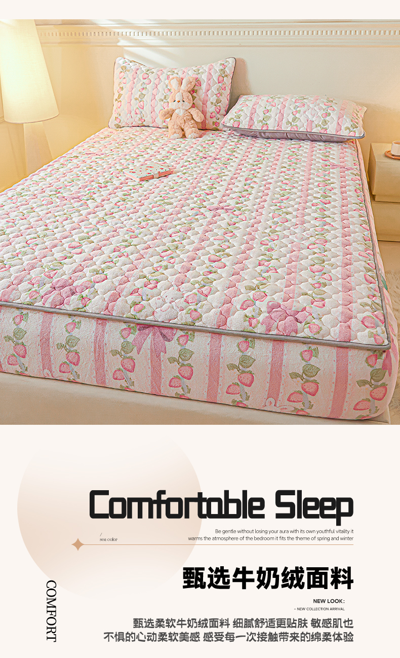 (总)卡伦家纺 2025新款A类牛奶绒夹棉加厚床垫单人双人床垫保护垫,爱的印记,爱心熊,安妮宝贝,宝石蓝,缤纷小可爱,草莓之恋,呆萌恐龙,高级灰,高雅紫,红豆沙,花间蘑力,花开一夏,花之谷,金叶飘香,开心乐园,梦想创造家,抹茶绿,南瓜灰灰,南瓜派,青春曲调,轻羽飞扬,甜蜜爱心,甜心小熊,香槟金,心相印,星幻恐龙,星梦露,熊熊世界,樱桃花语,云端漫步