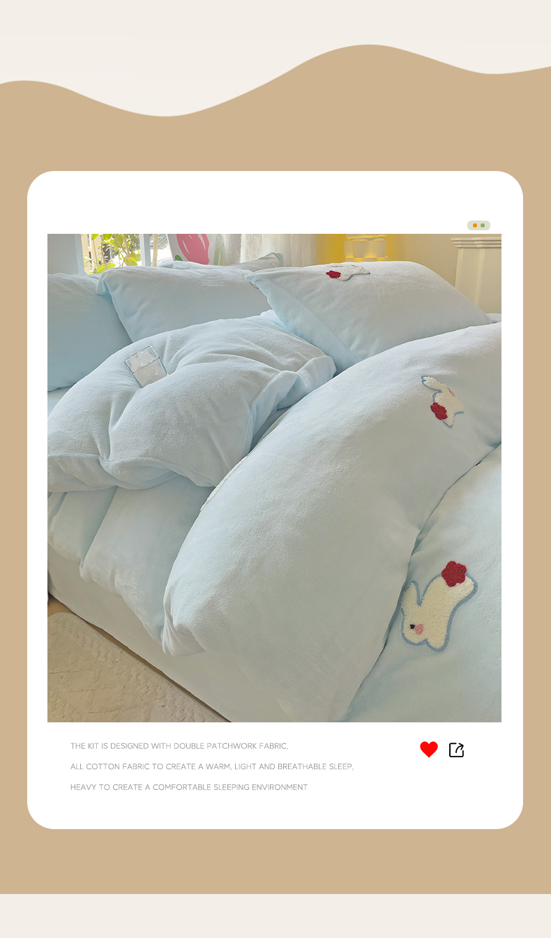 当前位置: 91家纺网 > 商品网购 > 床品套件 > 四件套 > 牛奶绒四件套 > 寐居家纺 2024新款纯色牛奶绒毛巾绣四件套 云朵兔-蓝