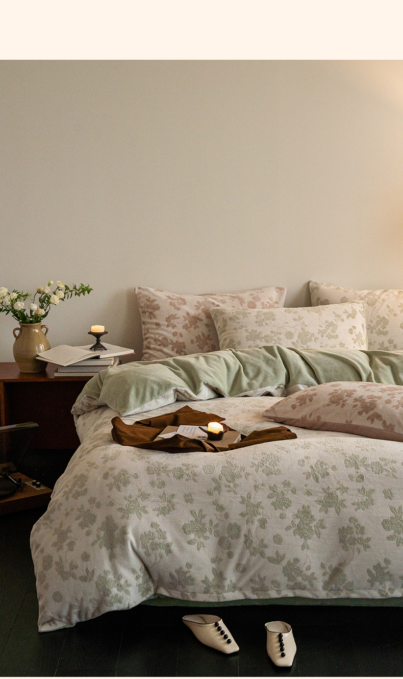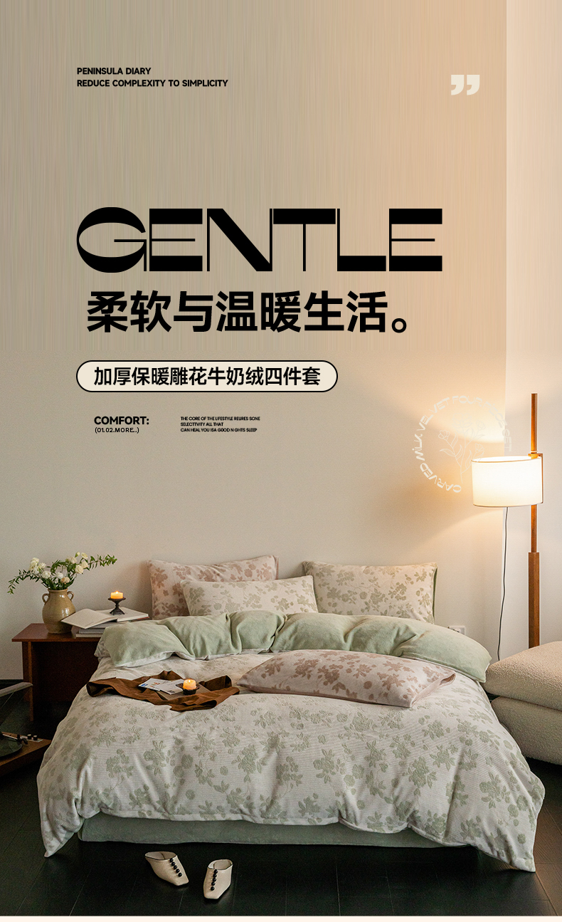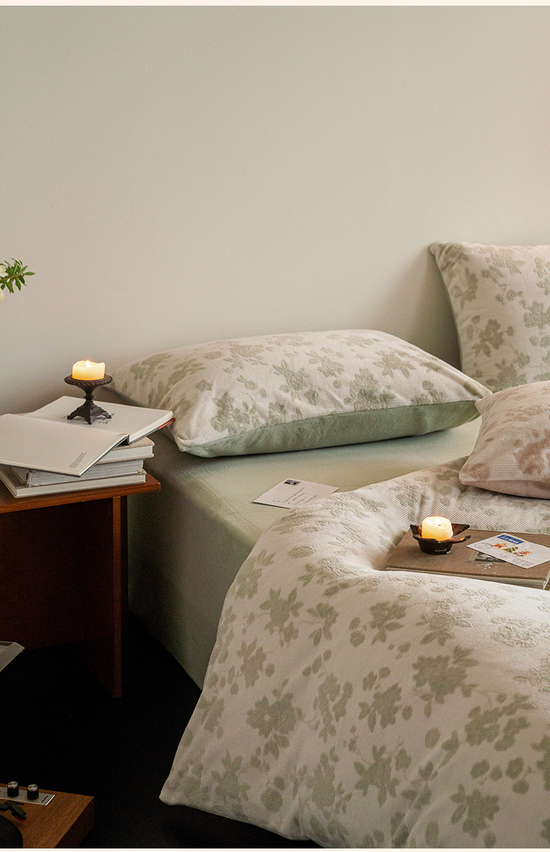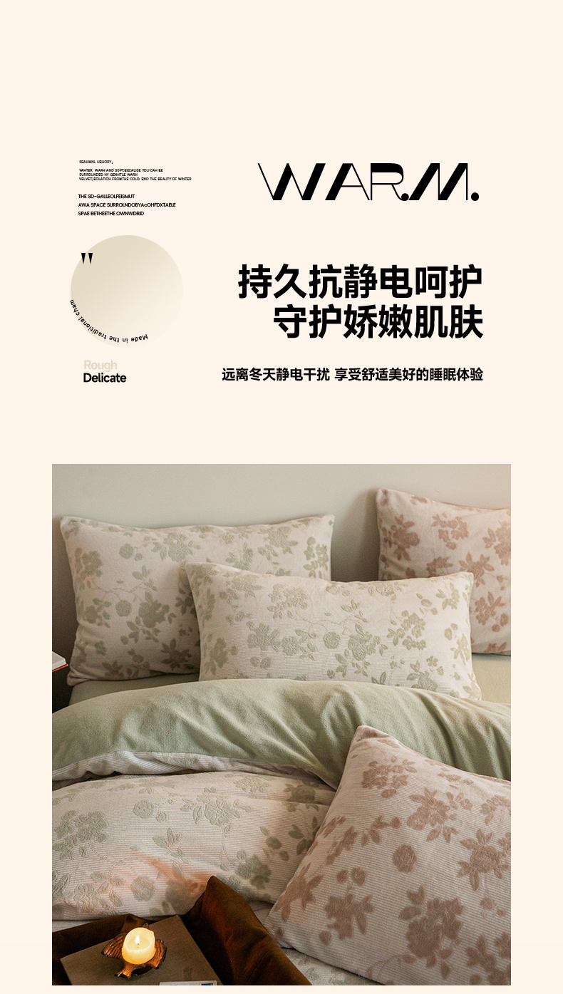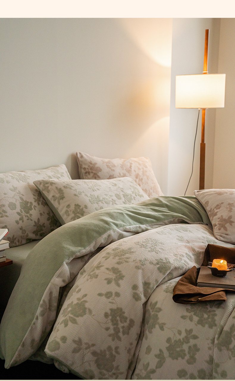 当前位置: 91家纺网 > 商品网购 > 床品套件 > 四件套 > 牛奶绒四件套 > 华超针织 2024新款雕花绒四件套-繁花+花千朵系列 花千朵-豆绿