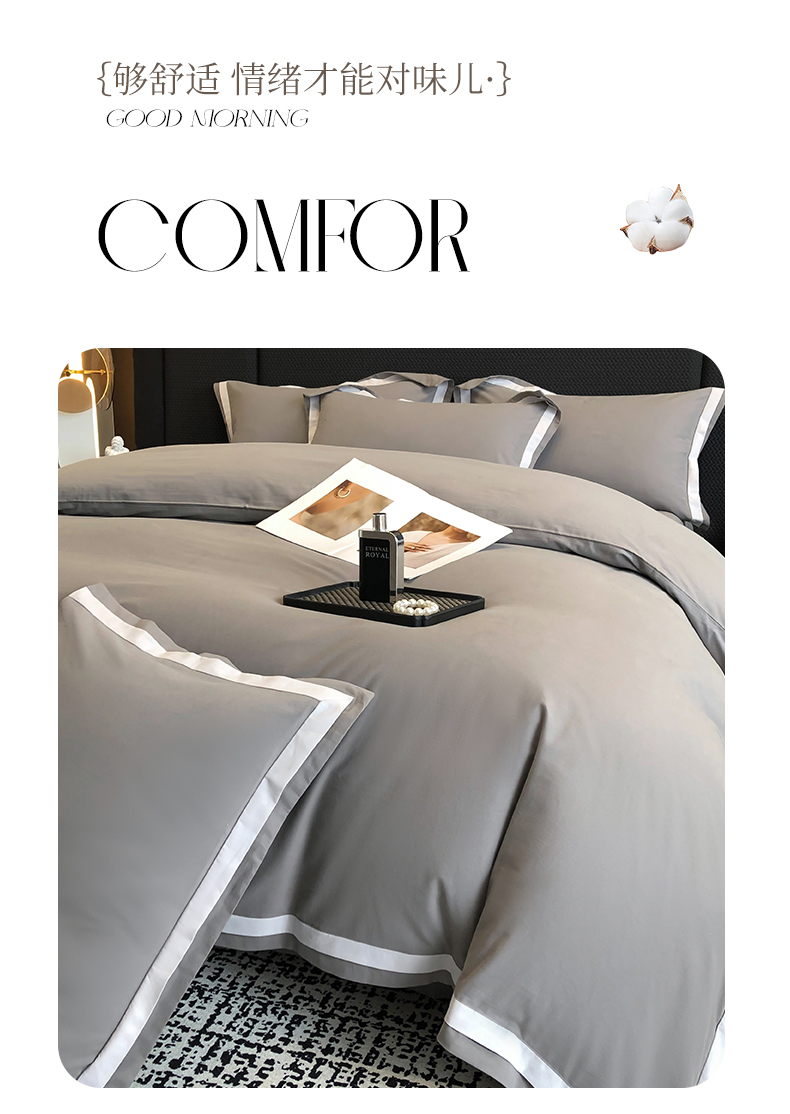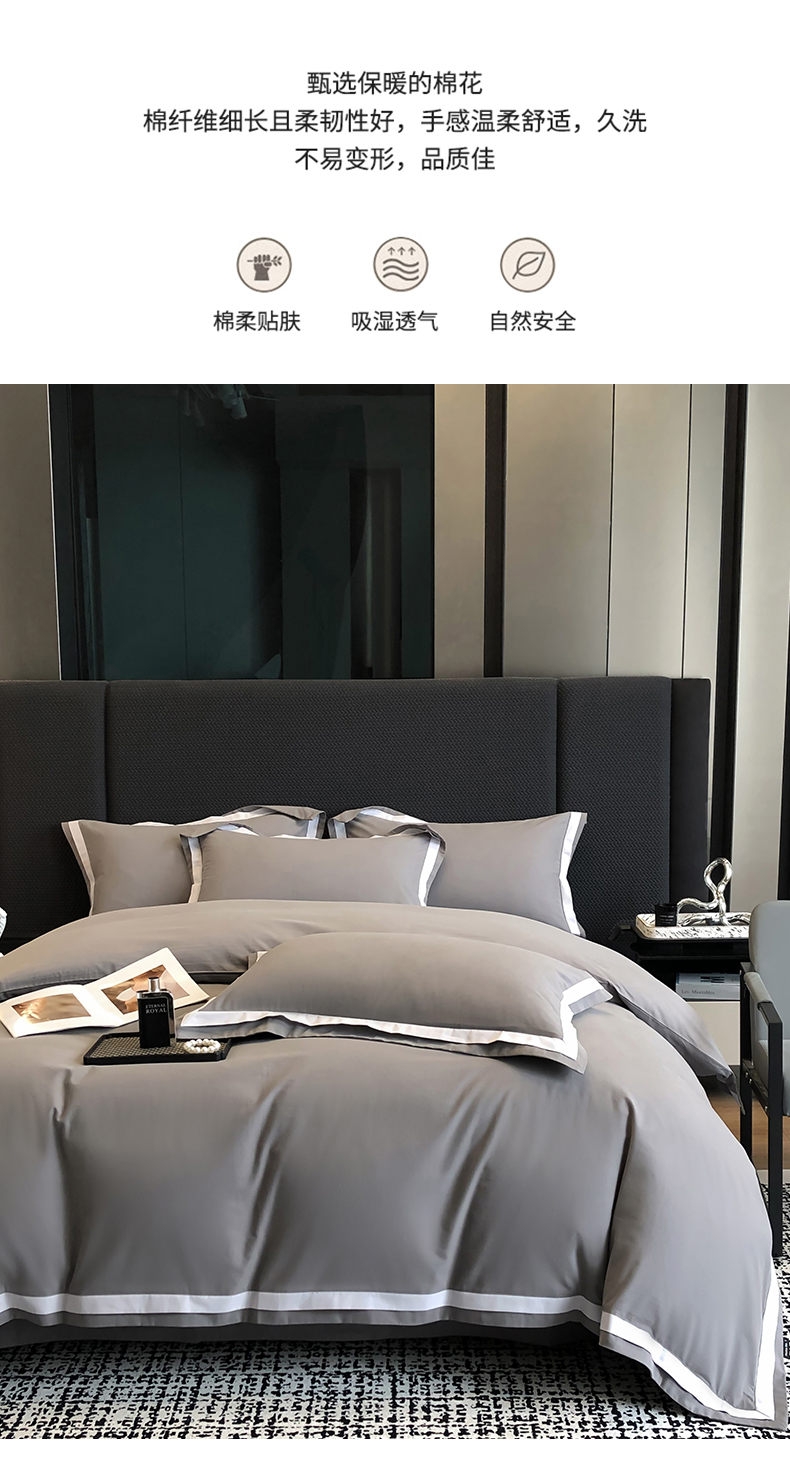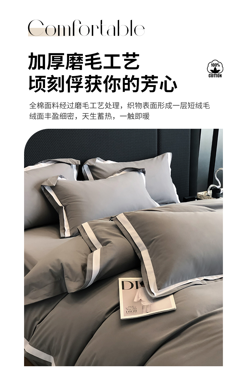 当前位置: 91家纺网 > 商品网购 > 床品套件 > 四件套 > 长绒棉四件套 > 家居1号家纺 2024秋冬新疆长绒棉体双拼纯色磨毛四件套-杰西 杰西-高级灰