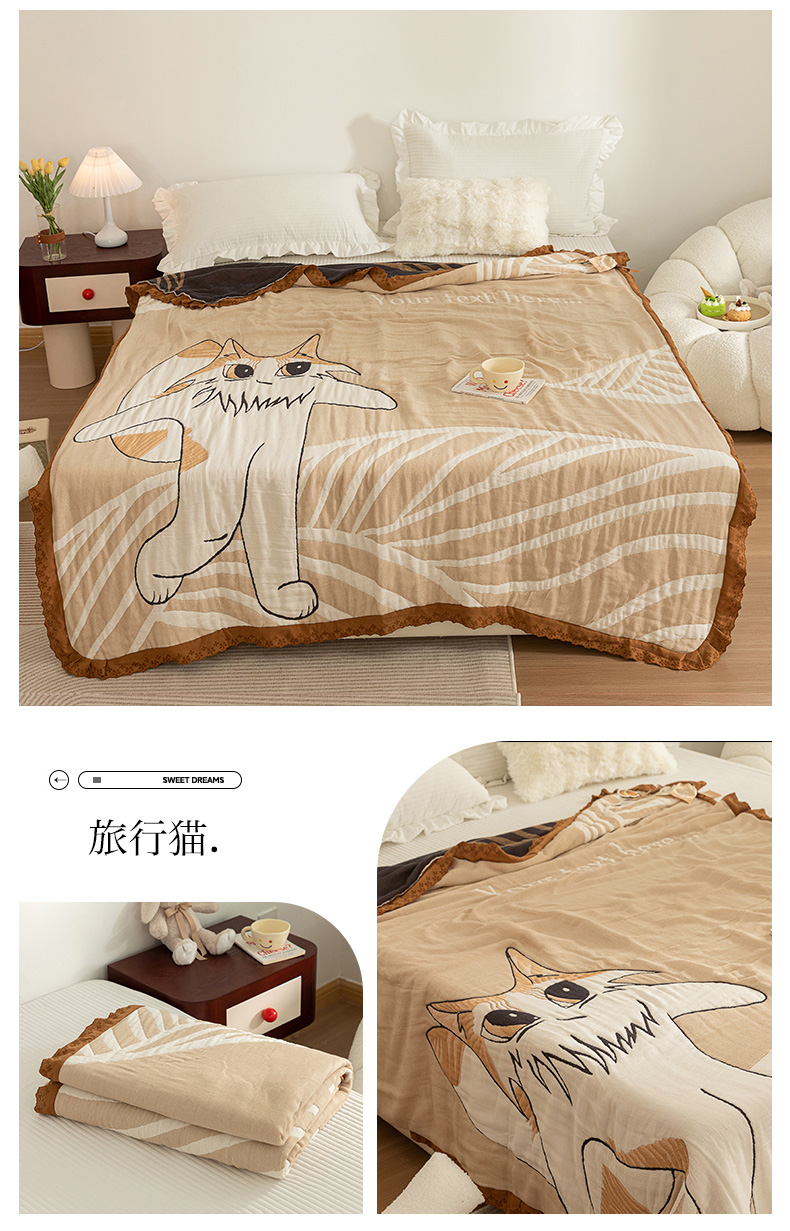 乐家毛巾被 2024新款十层纱布泡芙被 旅行猫
