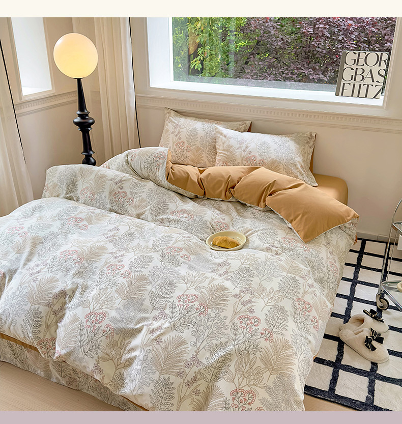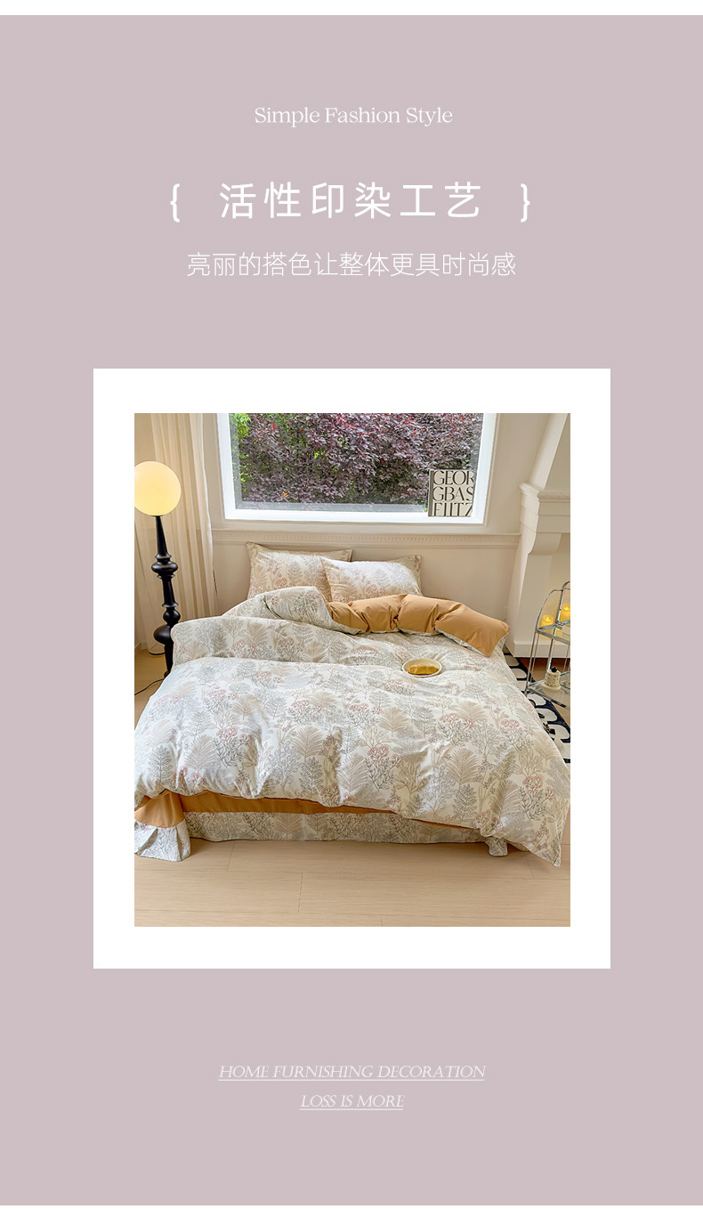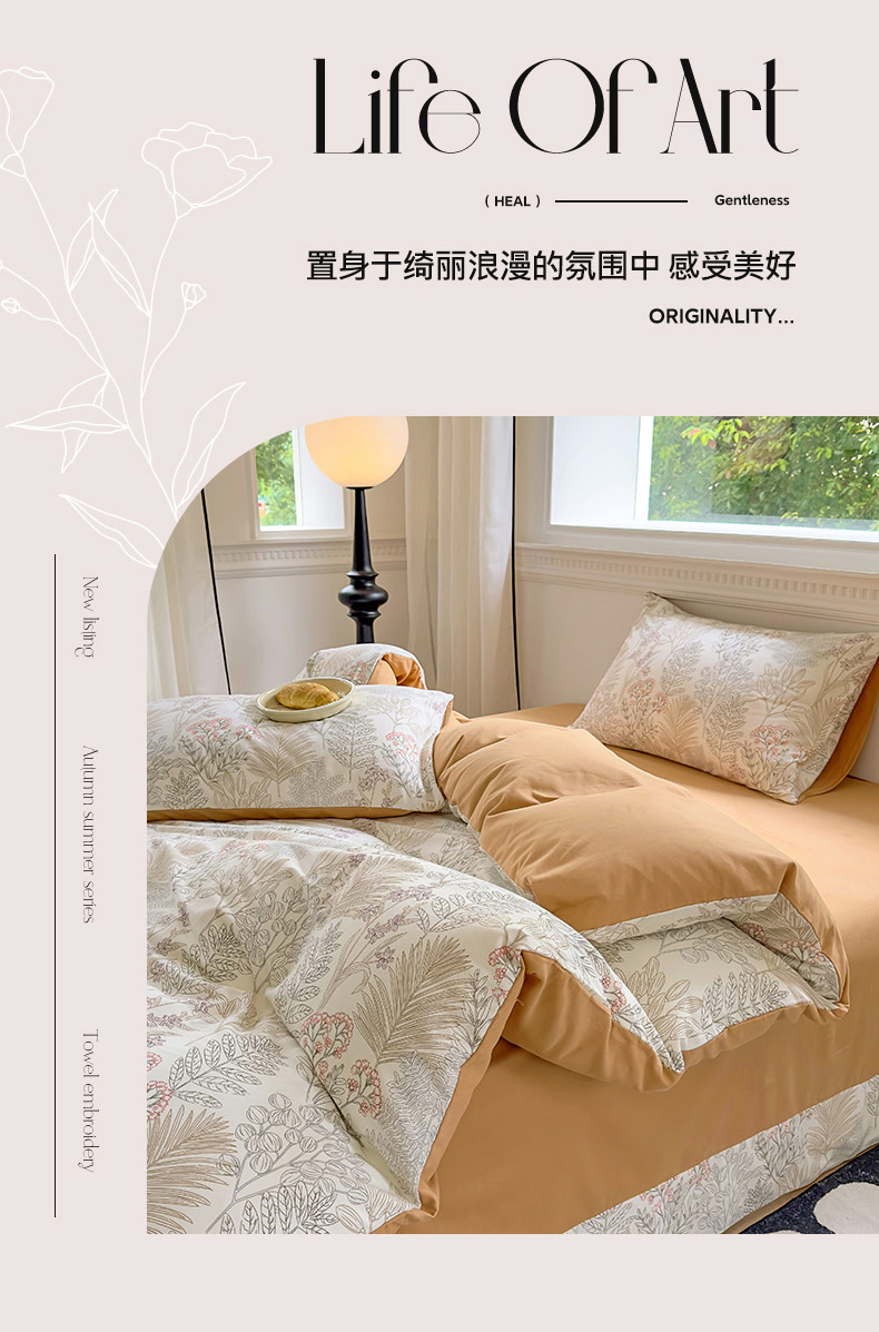 商品名称:田野 2024新款纯棉全棉磨毛印花四件套系列 晨晓 桔