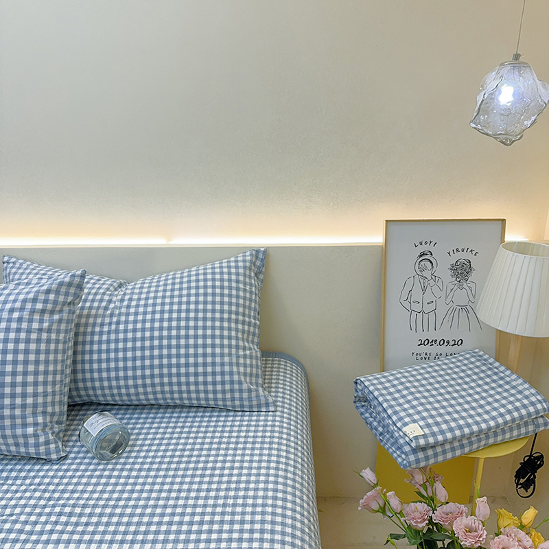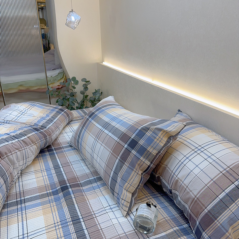 商品名称:2024新款水洗全棉条格床盖四件套 巴宝莉小格