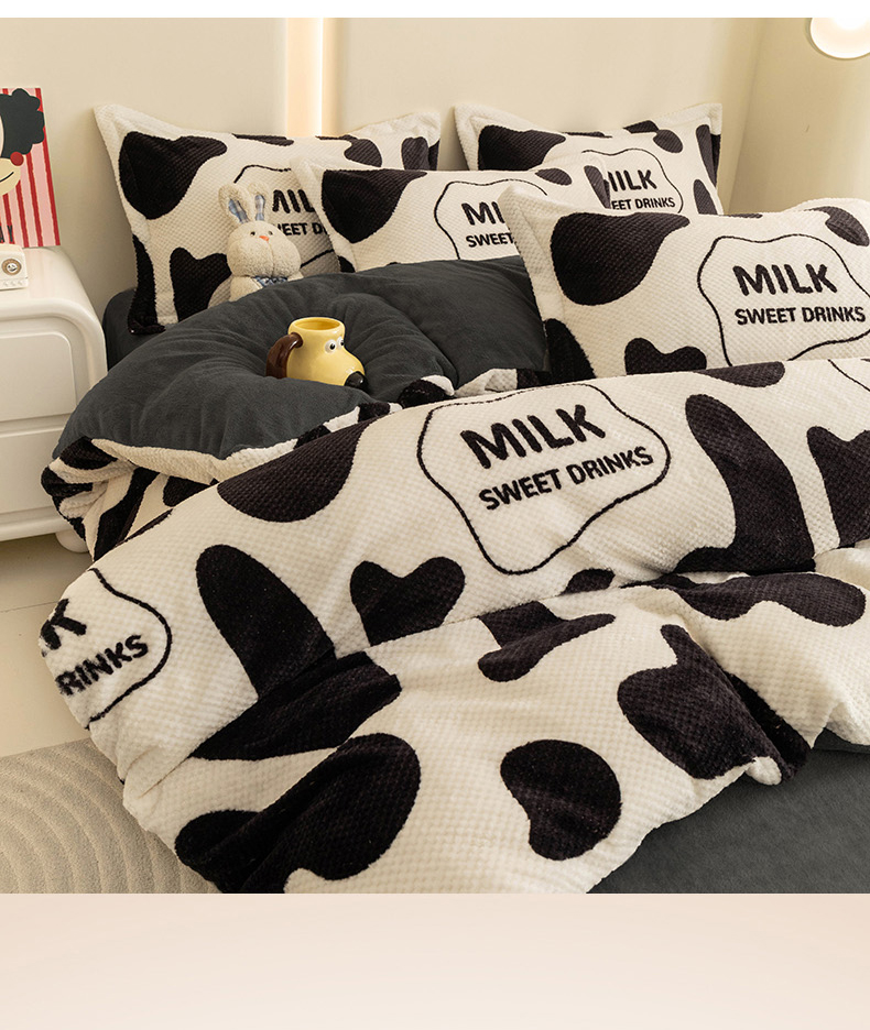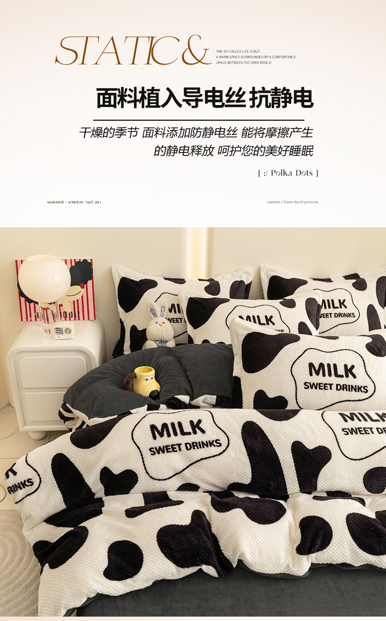 (总)倾慕家纺 2025新款卡通毛巾绣加厚保暖牛奶绒四件套,爱心女孩,咖啡小狗,猫咪熊兔,迷你小车,圣诞树熊,音乐企鹅