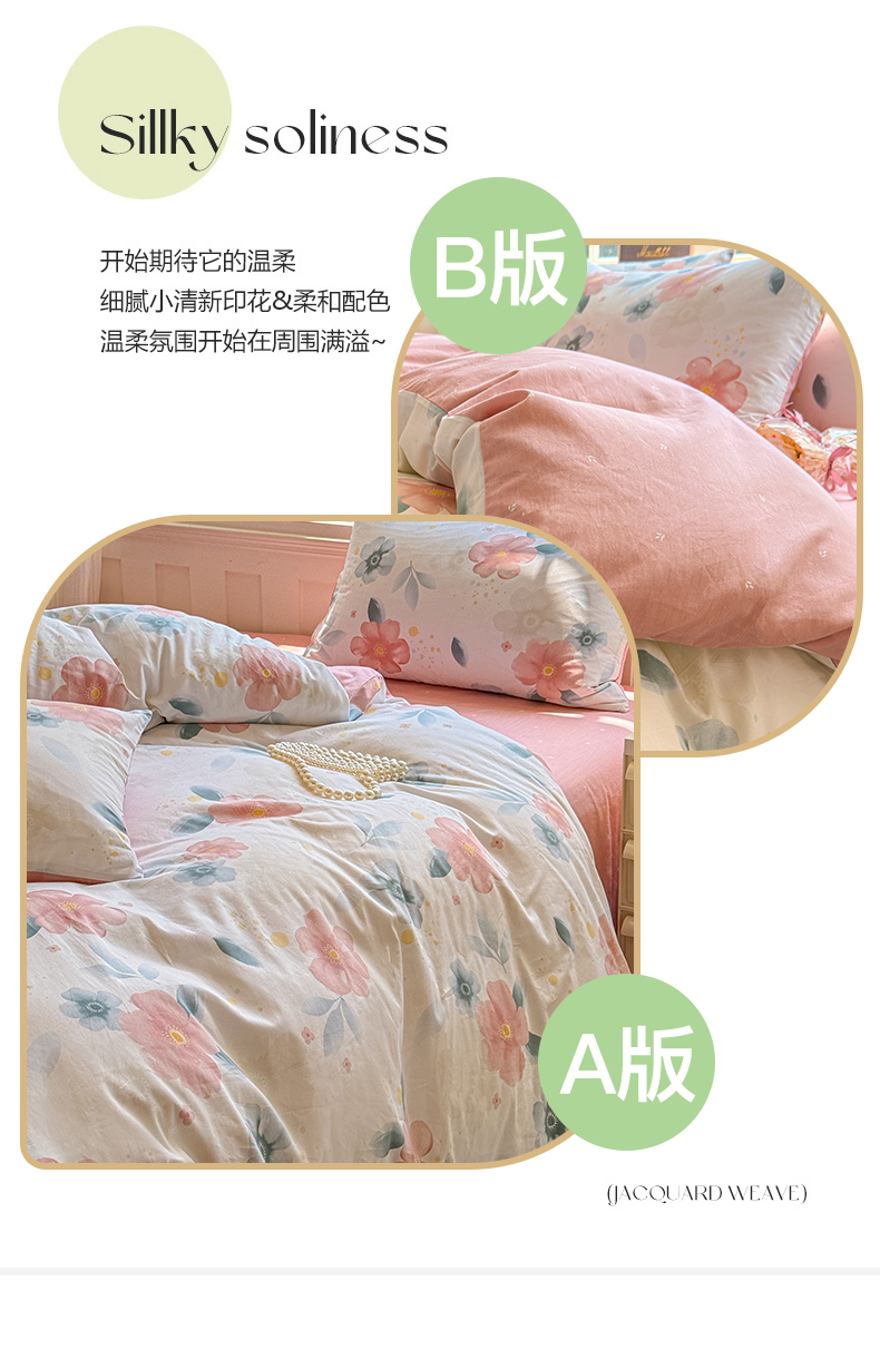 清雅福 2024新款全棉13070印花单品系列-四件套 半夏清风粉