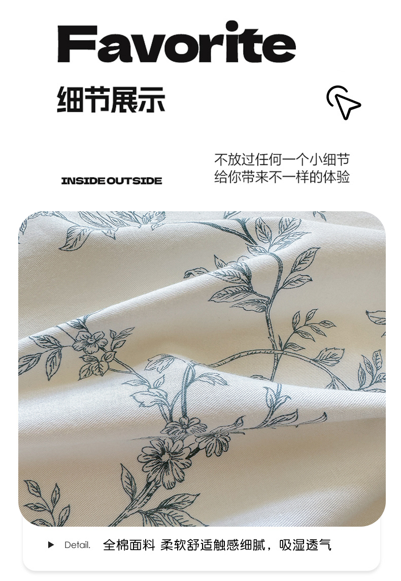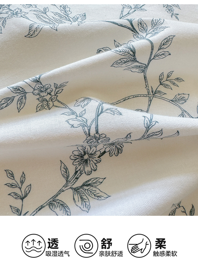 商品名称:清雅福 2024新款全棉13070印花单品系列-四件套 满庭米