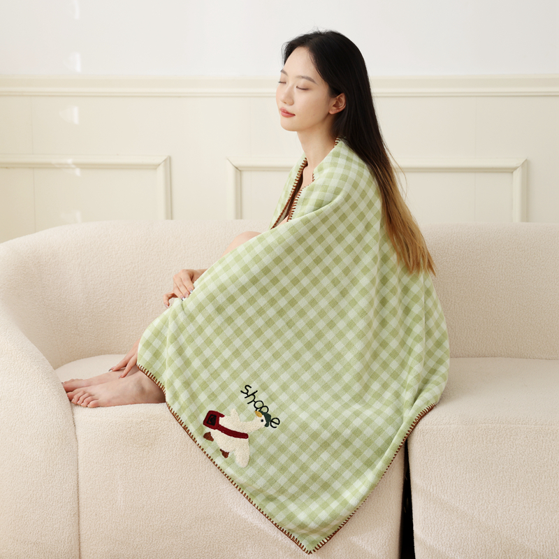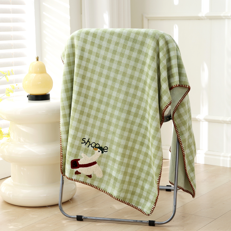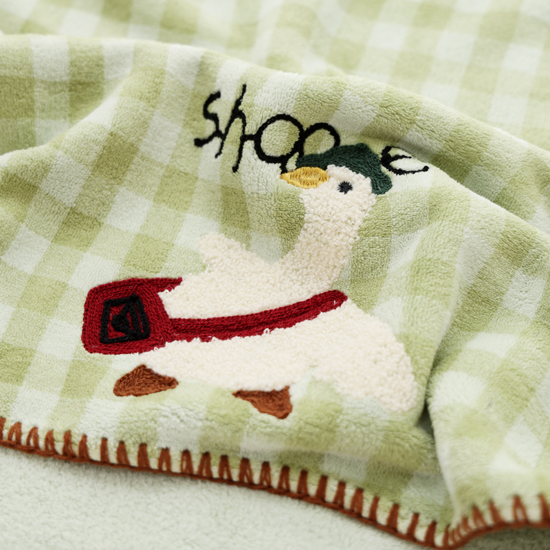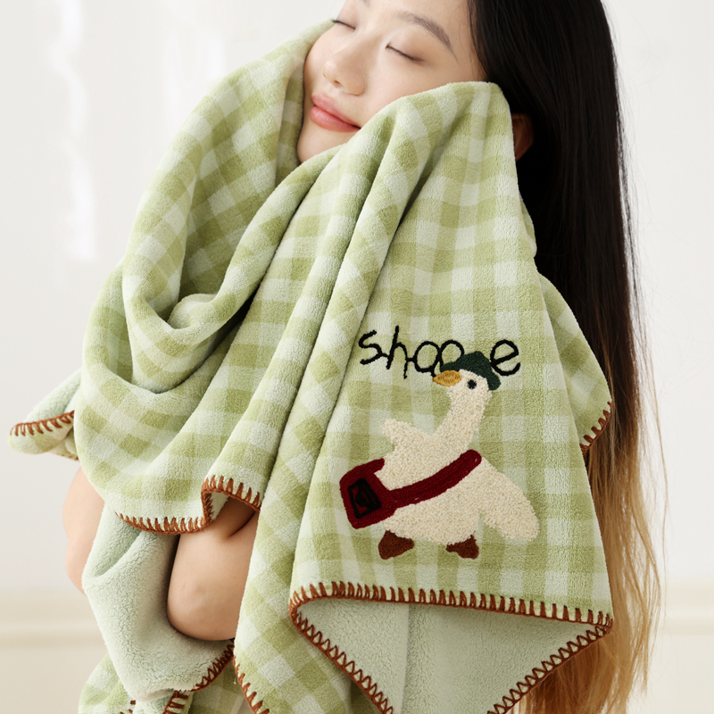 当前位置: 91家纺网 > 商品网购 > 居家日用 > 毛巾/浴巾/浴袍 > 浴巾 > 朴尔家纺-毛巾被 2024新款毛巾绣勾边小格快乐鸭AB版珊瑚绒速吸速干毛巾浴巾 格子快乐鸭-青绿浴巾