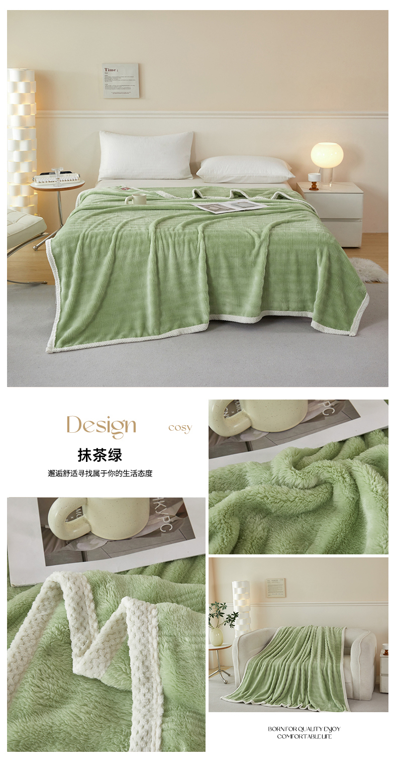 商品名称:2024新款仿兔绒泡泡绒毛毯家用四季毯 条纹人生 抹茶绿
