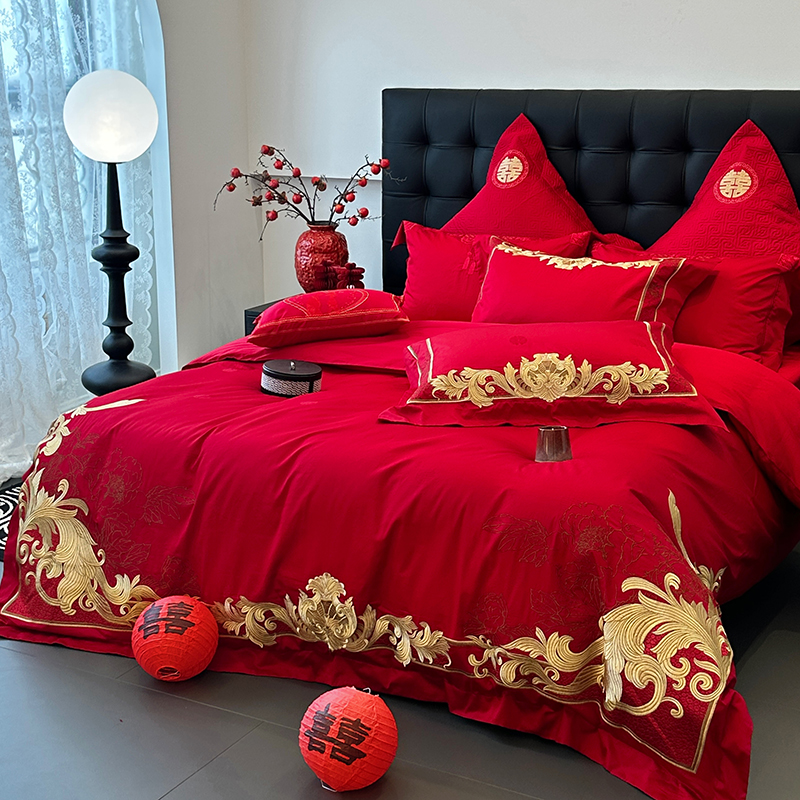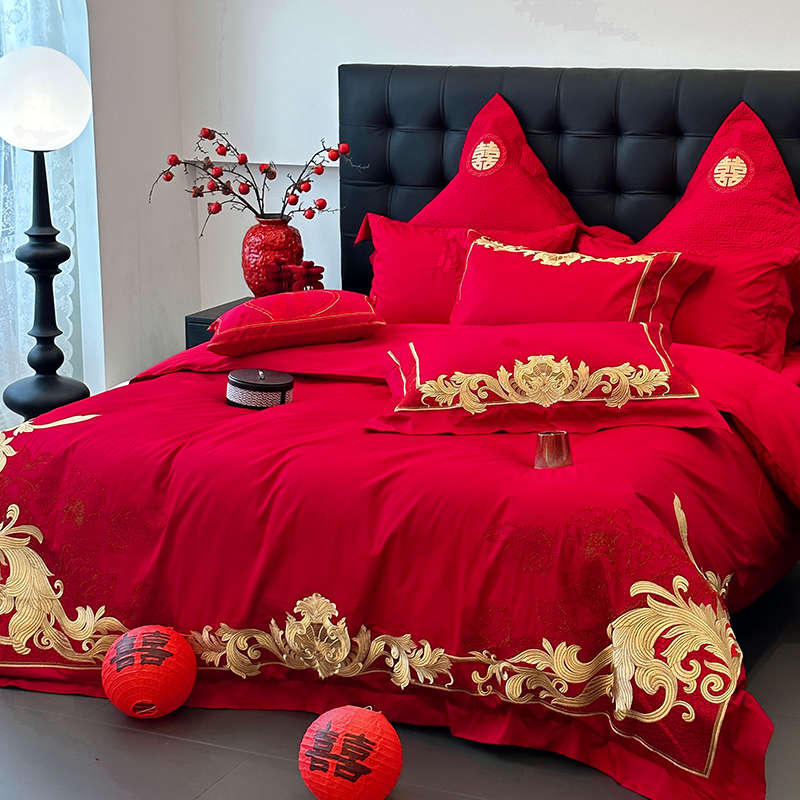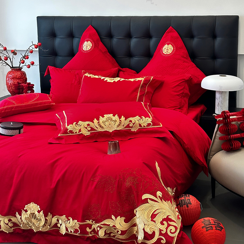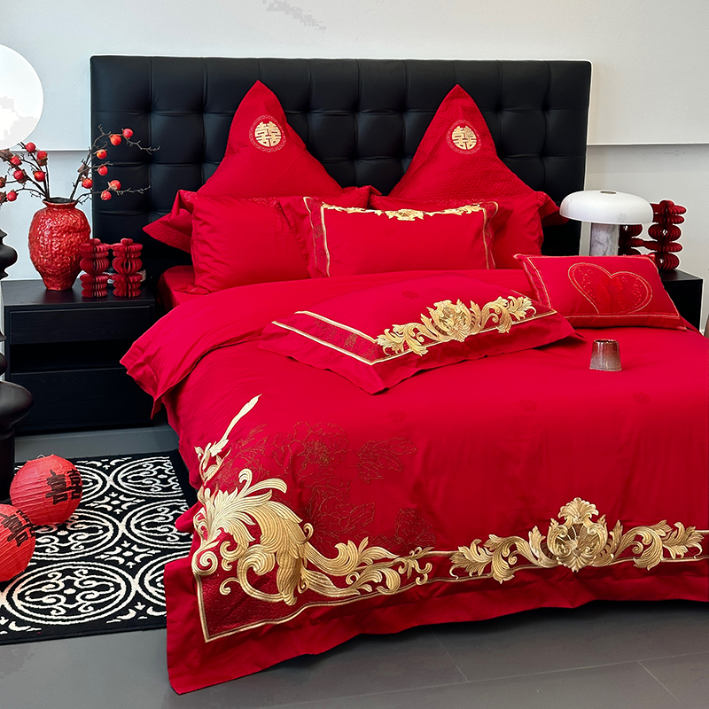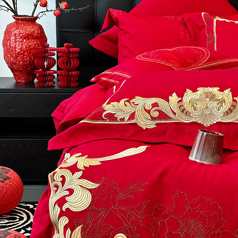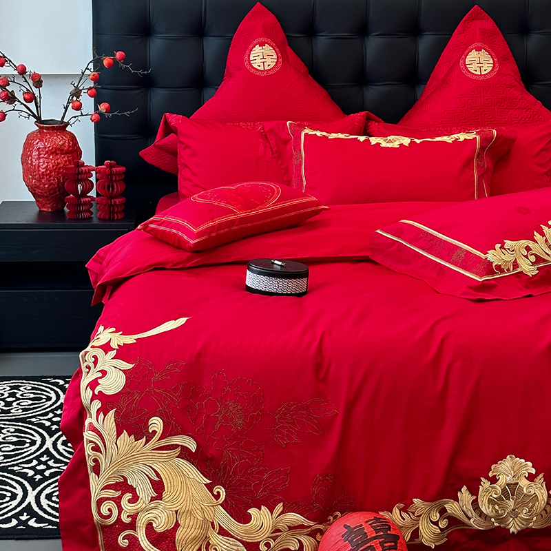商品名称:JUICY 橘滋家纺 2024新款100支全棉提花高端婚庆《囍》系列四件套 金色年华