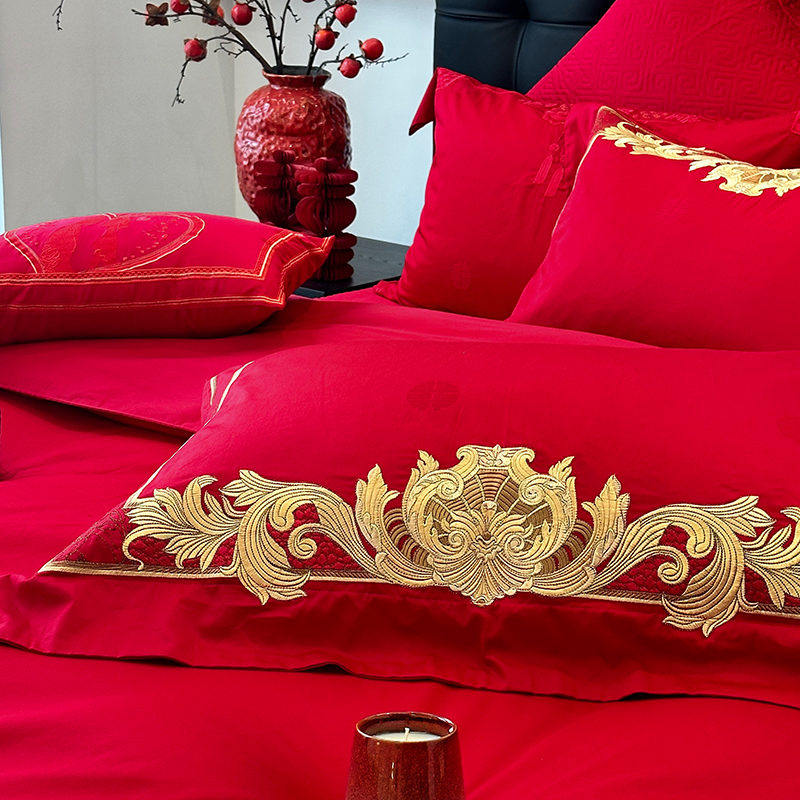 JUICY 橘滋家纺 2024新款100支全棉提花高端婚庆《囍》系列四件套 金色年华