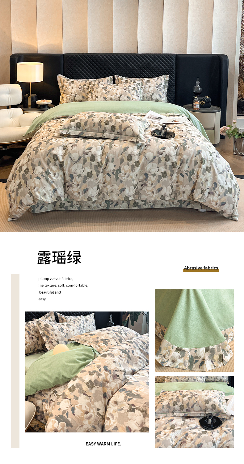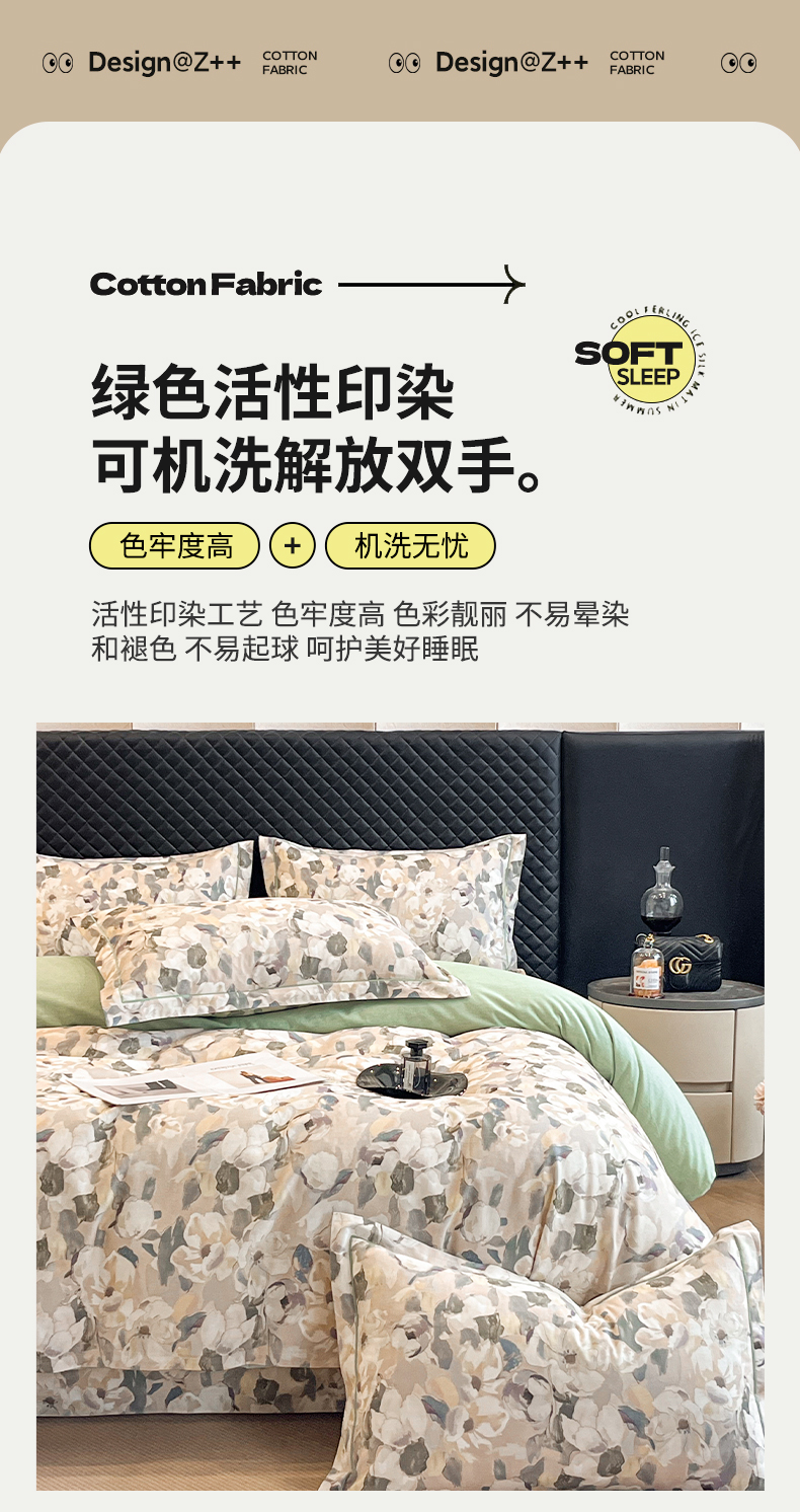 当前位置: 91家纺网 > 商品网购 > 床品套件 > 四件套 > 普通磨毛四件套 > 大柏树 2025新款A类全棉磨毛印花四件套 露瑶绿