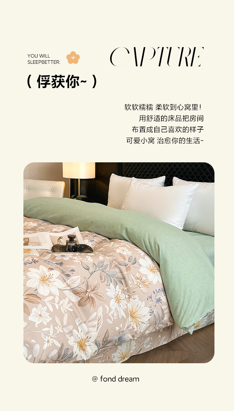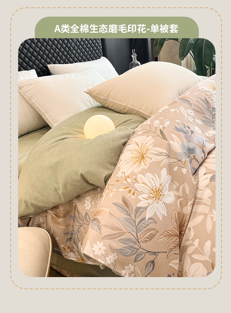 • 91家纺网 家纺一手货源 找家纺 大柏树 2025新款A类全棉磨毛印花单被套 亭语花间