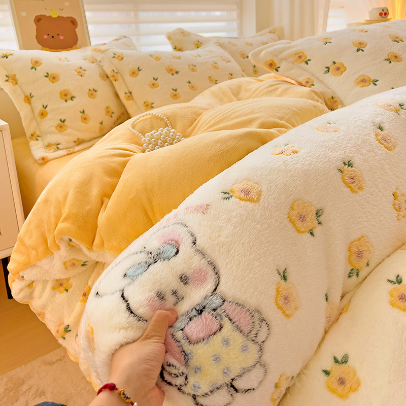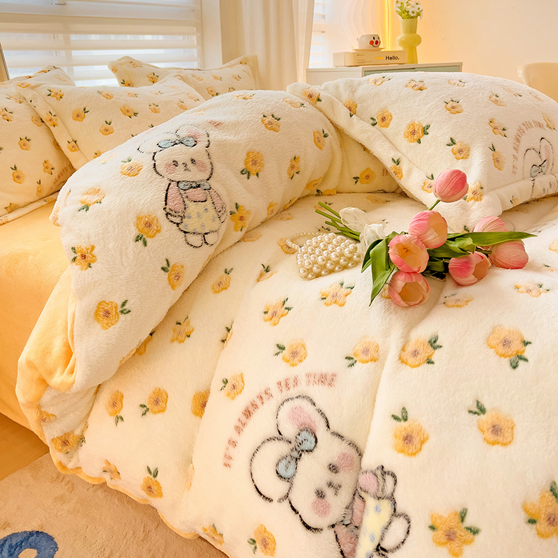 (总)韩巢家纺 2025新款高克重雪花绒牛奶绒四件套系列,郁金香,爱心熊(绿),巴丽娜,大白鹅,大耳朵兔,蝶雅,花花世界,灰色轨迹,米菲,七彩,田园兔(黄),小怪兽,幸运兔,英伦熊