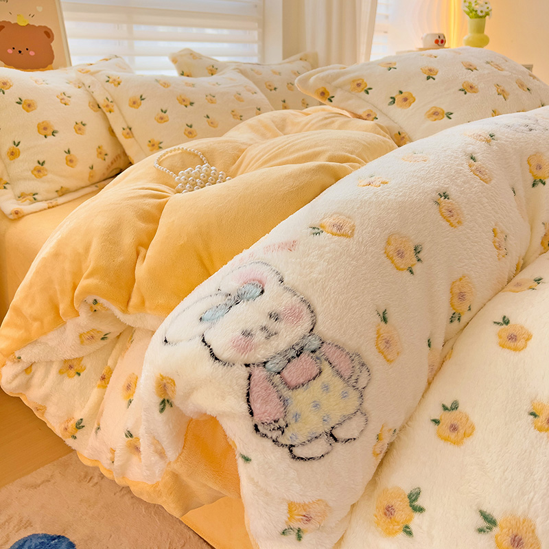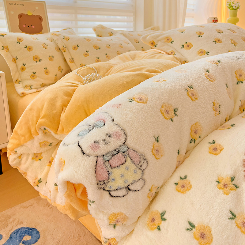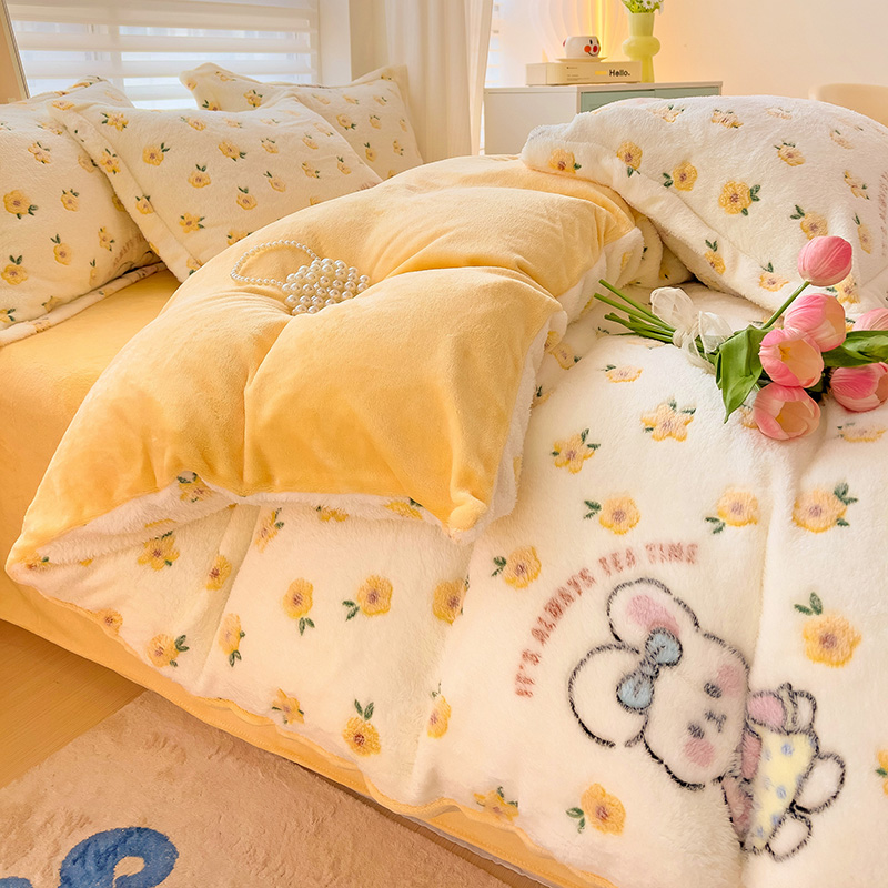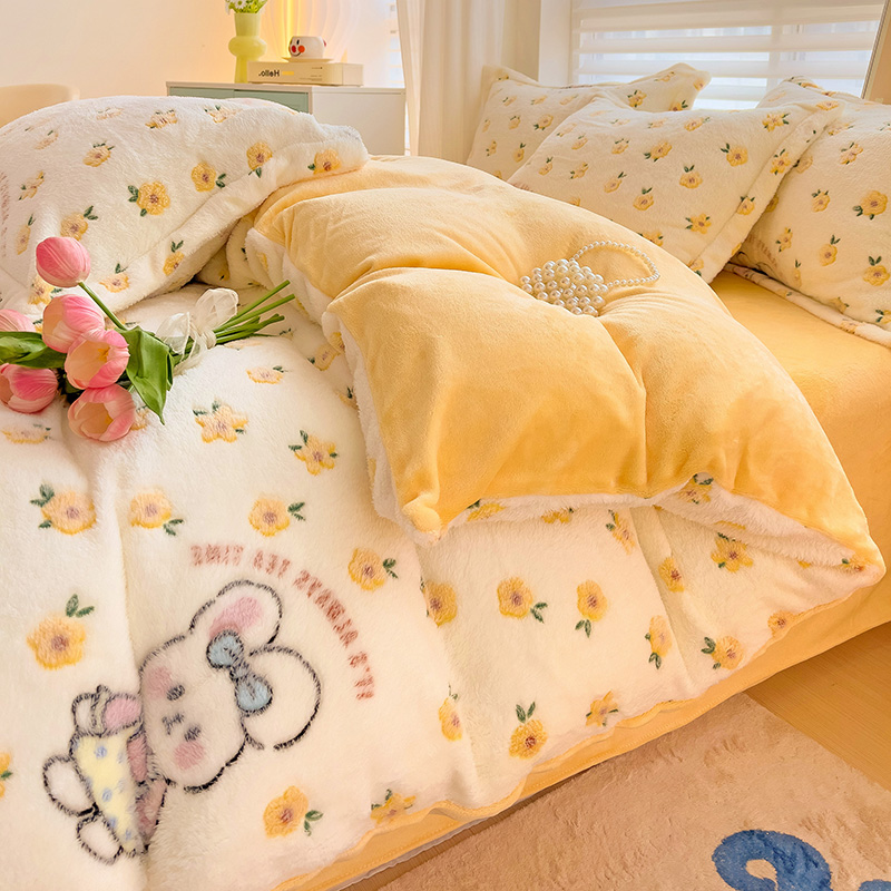 • 91家纺网 家纺一手货源 找家纺 2024新款加厚雪花绒印花单件被套-风格二(提供卖家秀 ) 田园兔(黄)