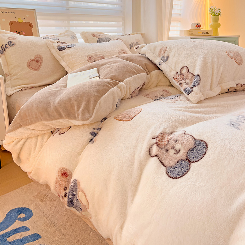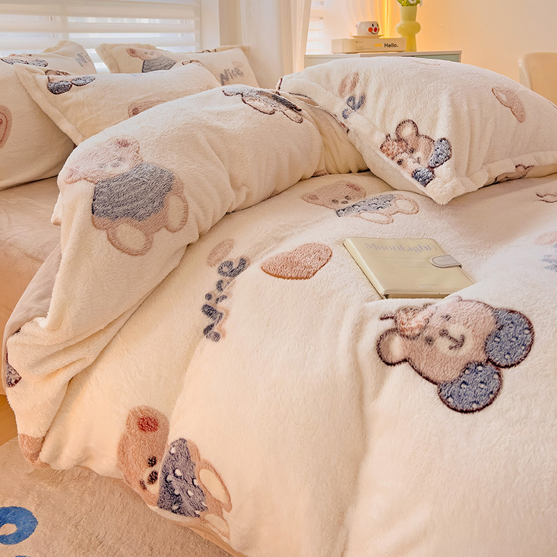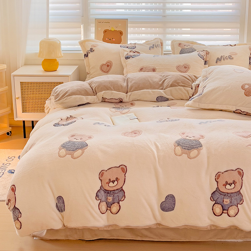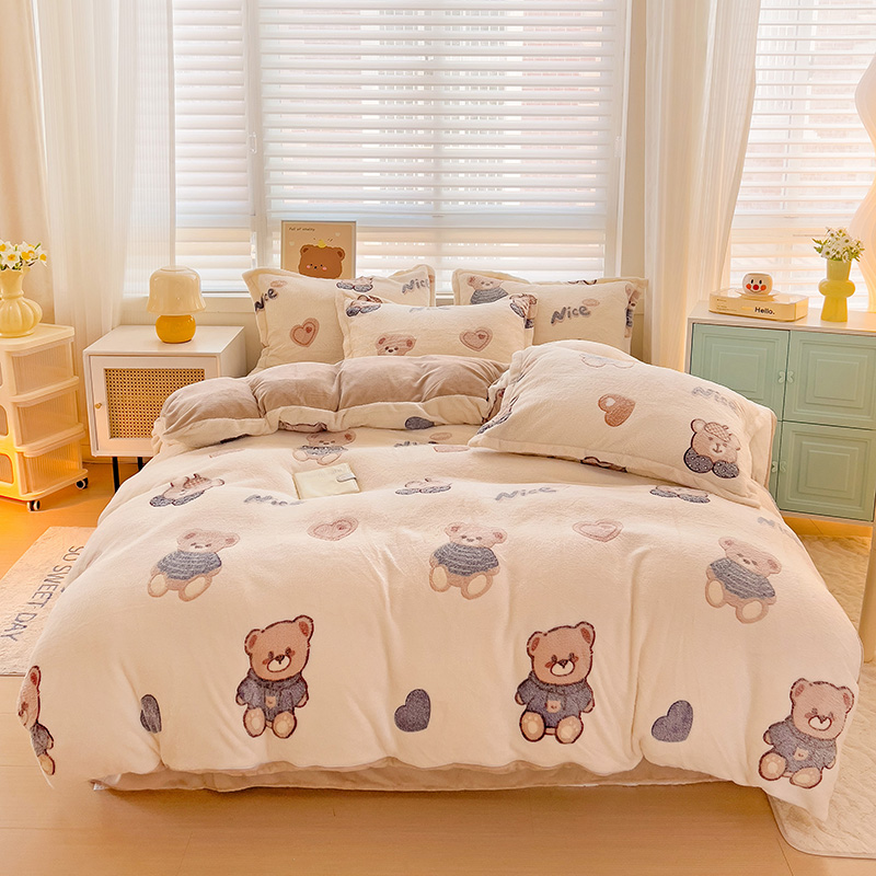 • 91家纺网 家纺一手货源 找家纺 2024新款加厚雪花绒印花单件被套-风格二(提供卖家秀 ) 英伦熊
