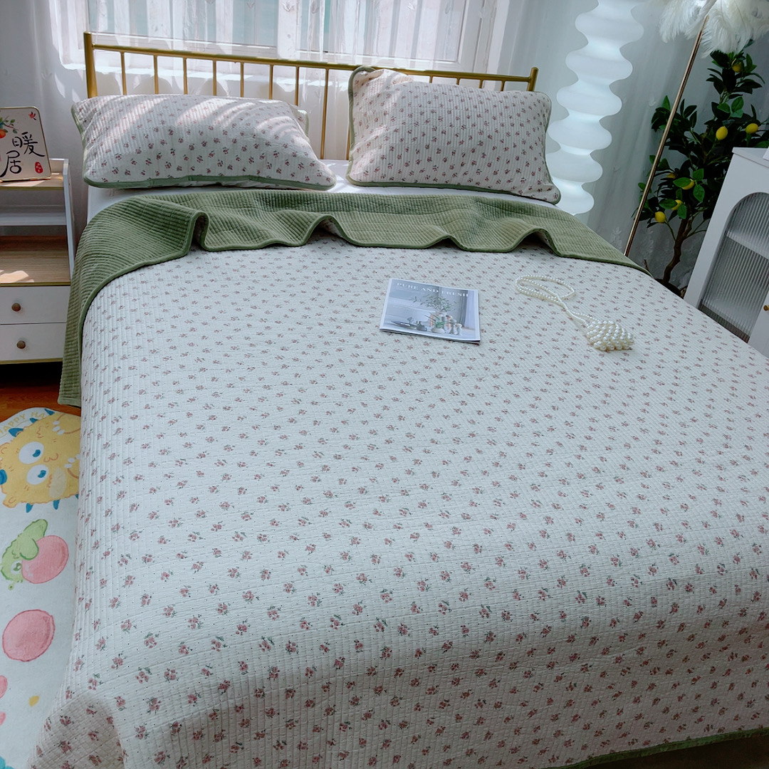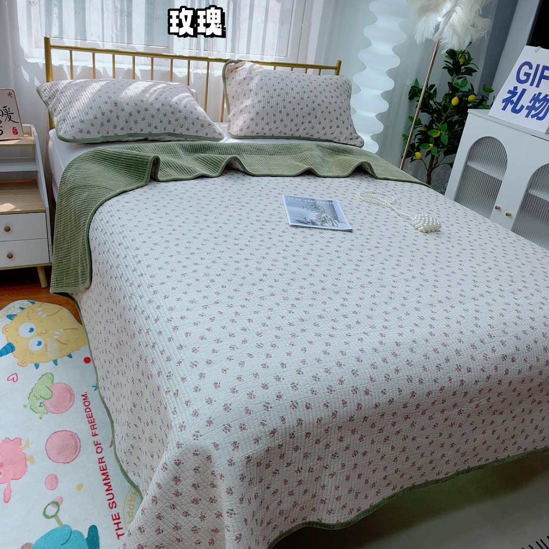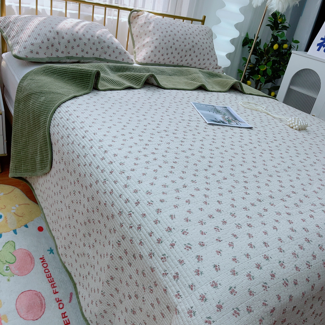 商品名称:2024新款棉加绒双面两用四季款床盖三件套玫瑰