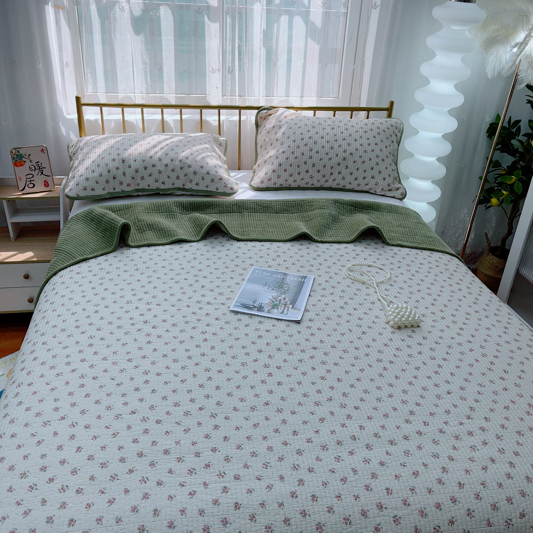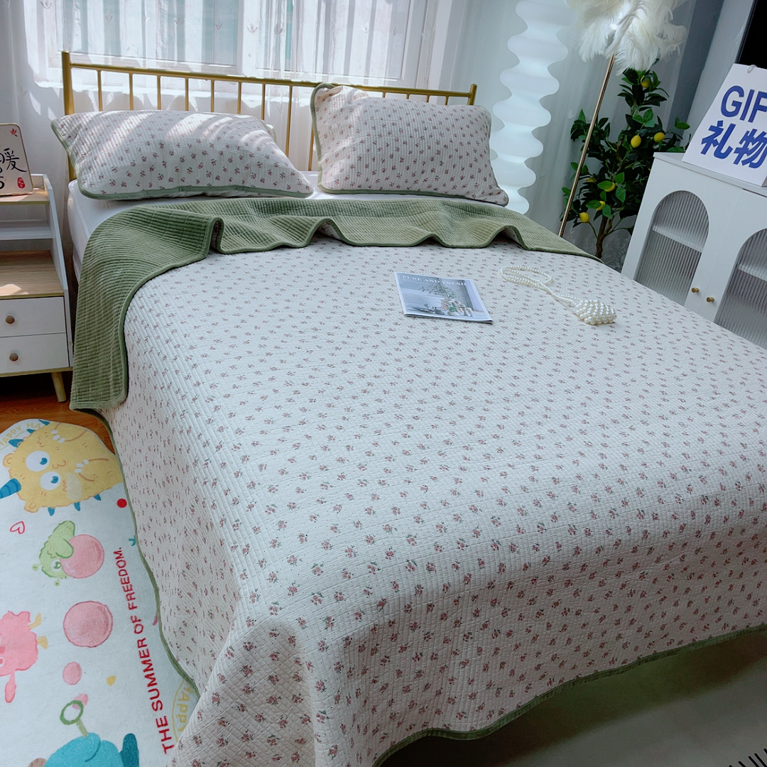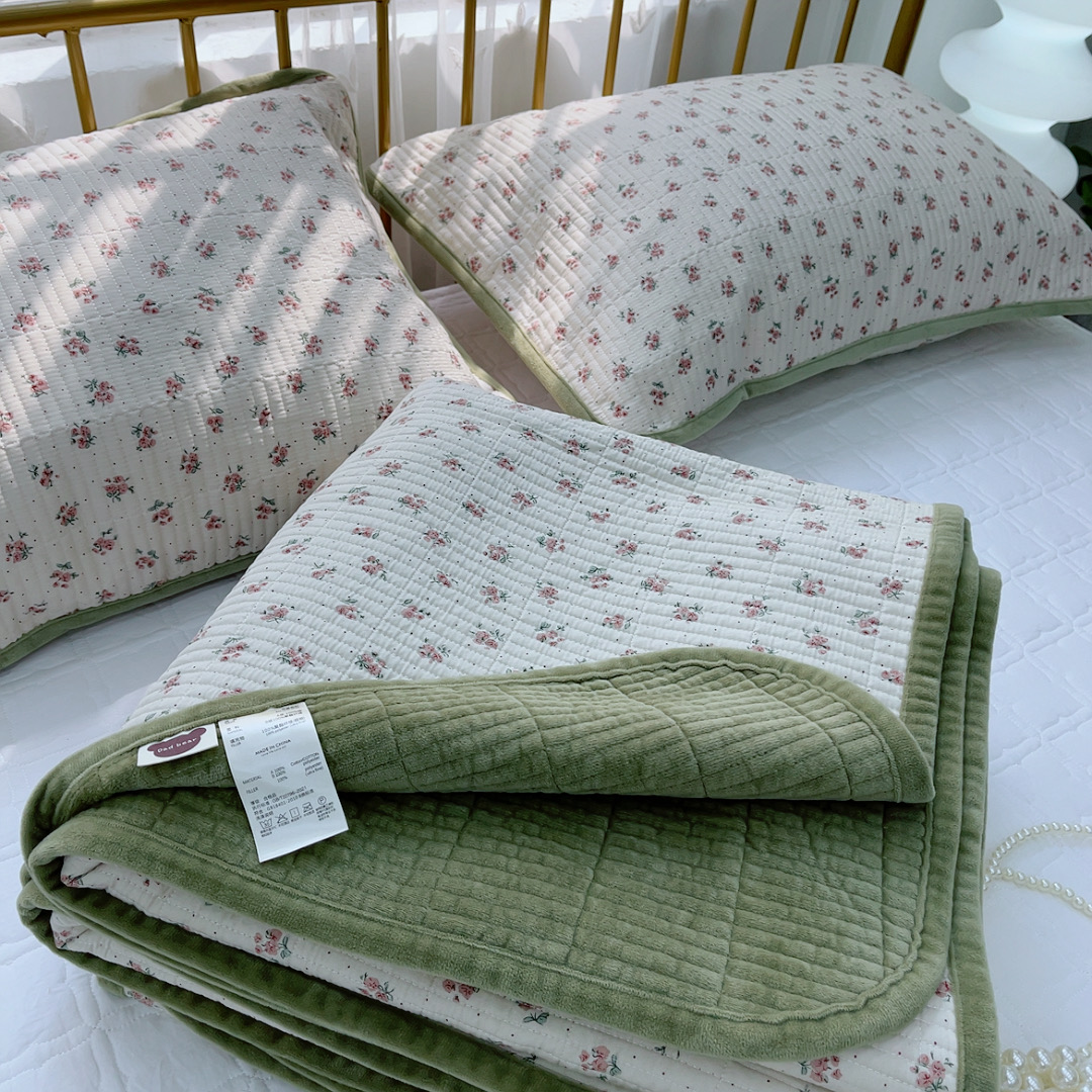商品名称:2024新款棉加绒双面两用四季款床盖三件套玫瑰