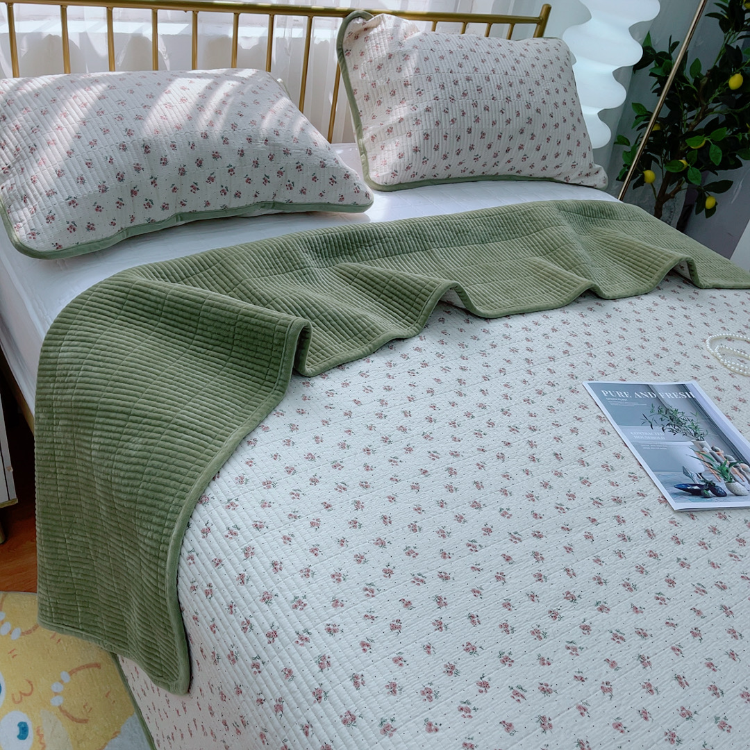 (总)暖居 2026新款一面纯棉一面绒床盖+同款纯棉豆豆被跑量,兰意,冰淇淋,绿芽,奶油波罗,森系绿野,疏影,樱桃密果,黑巧豹纹,小花,星月