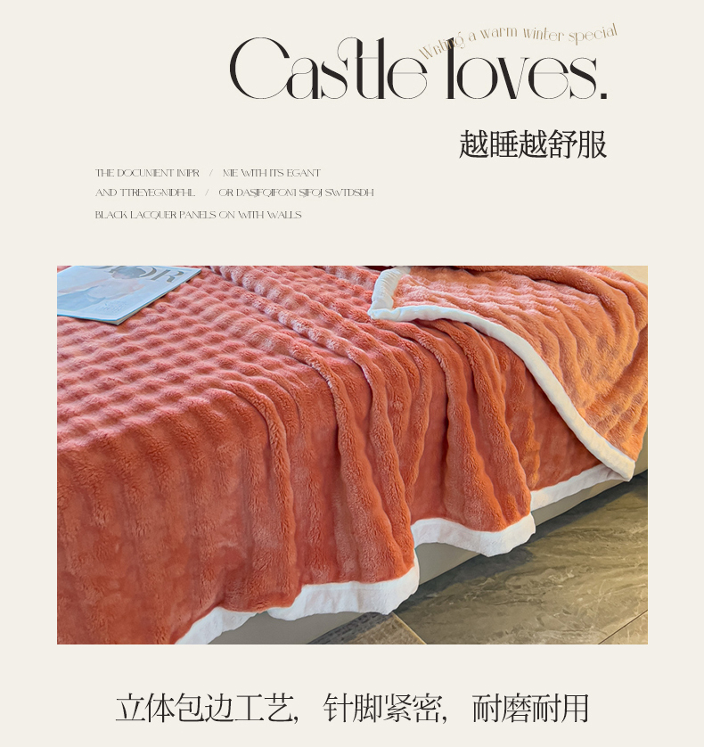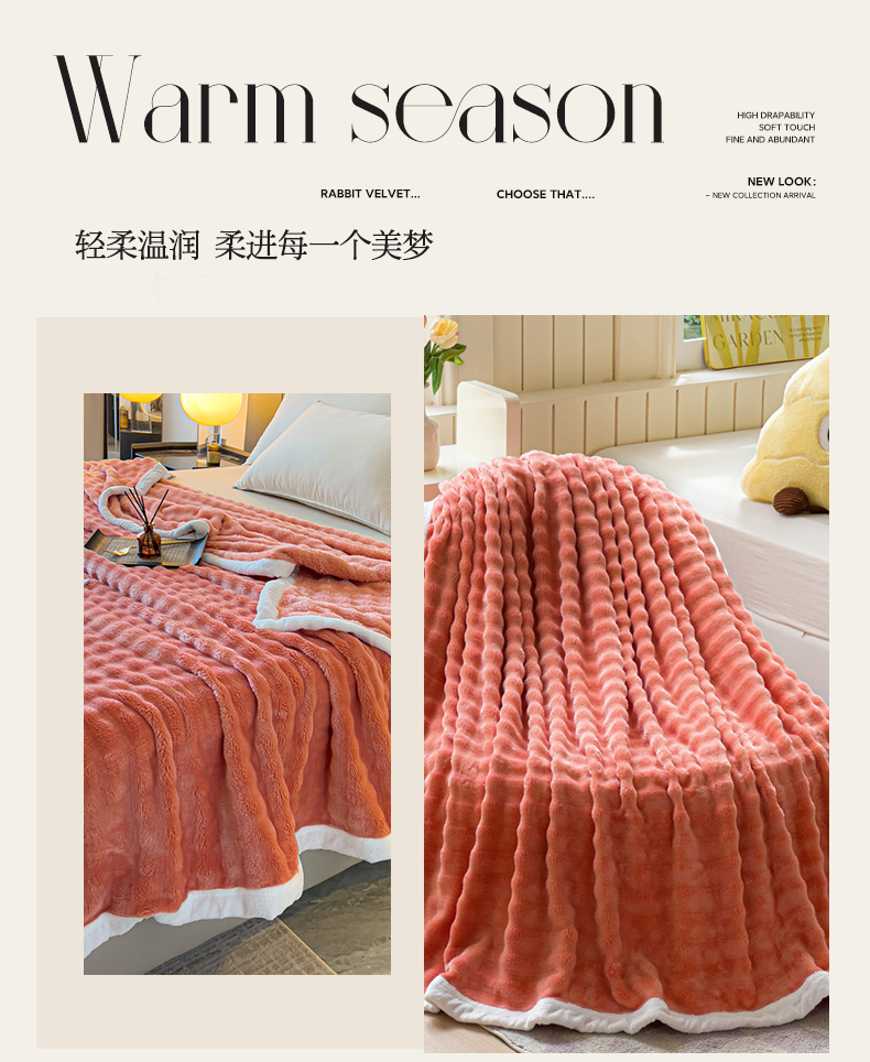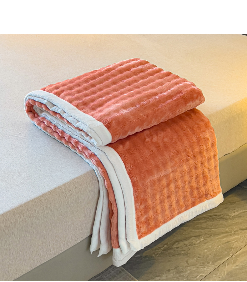 慕克斯家纺 2024新款泡泡毯兔毛绒牛奶绒毛毯兔兔绒毛毯毯子 泡泡毯橘色