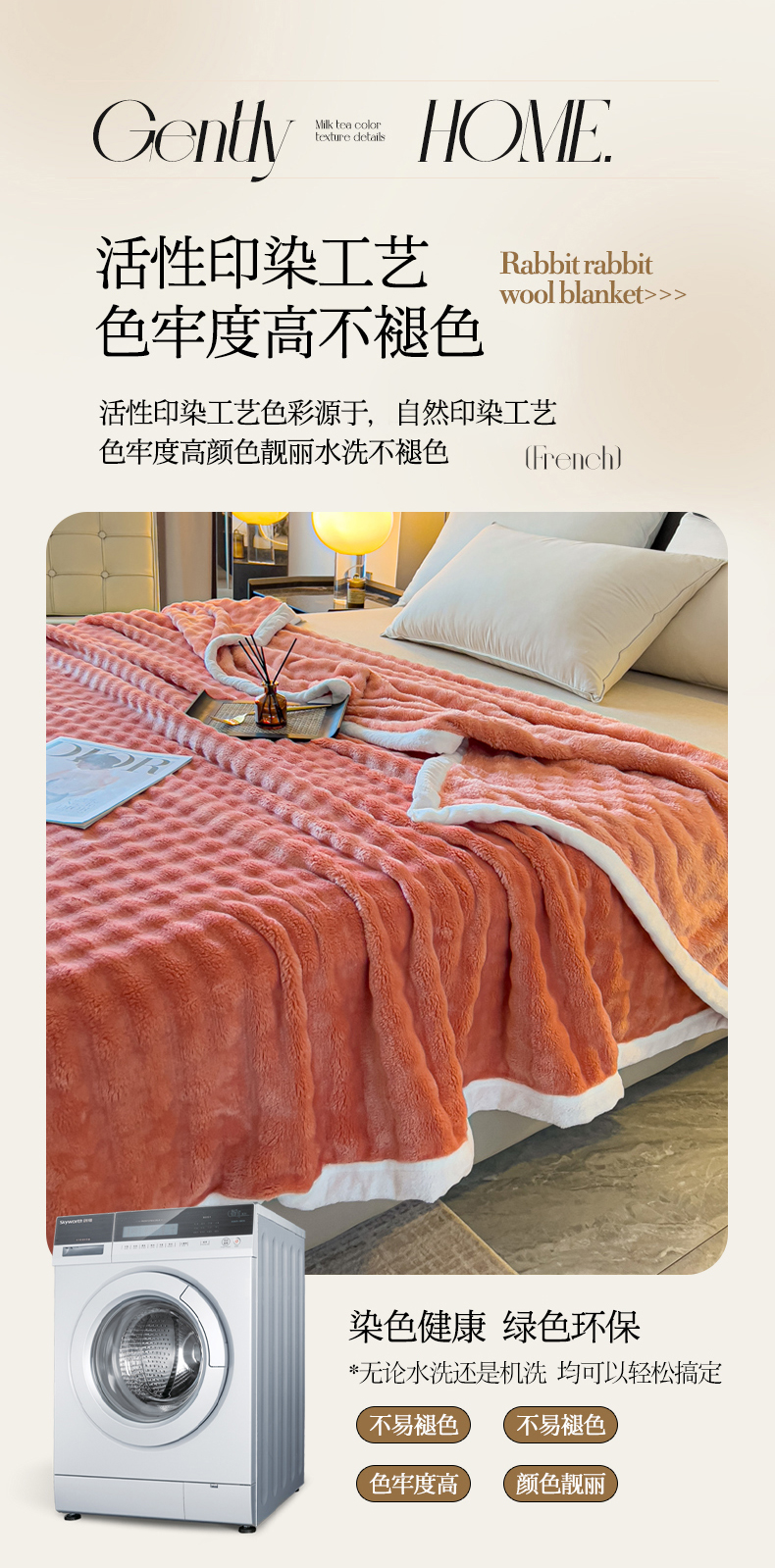 商品名称:慕克斯家纺 2024新款泡泡毯兔毛绒牛奶绒毛毯兔兔绒毛毯毯子 泡泡毯橘色
