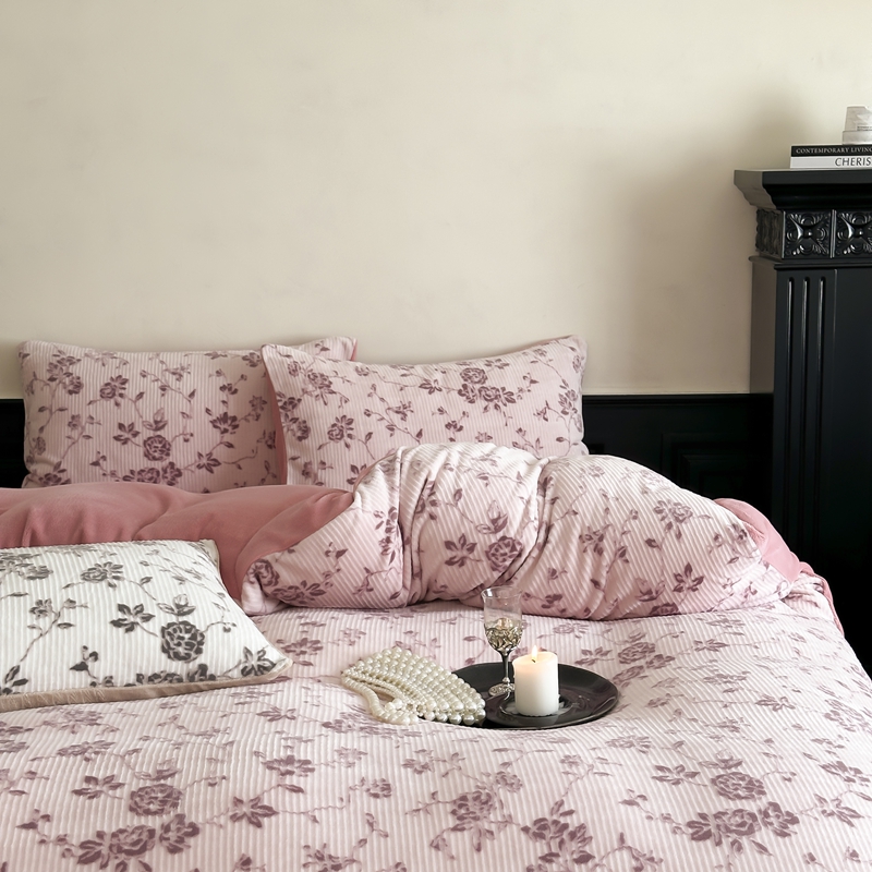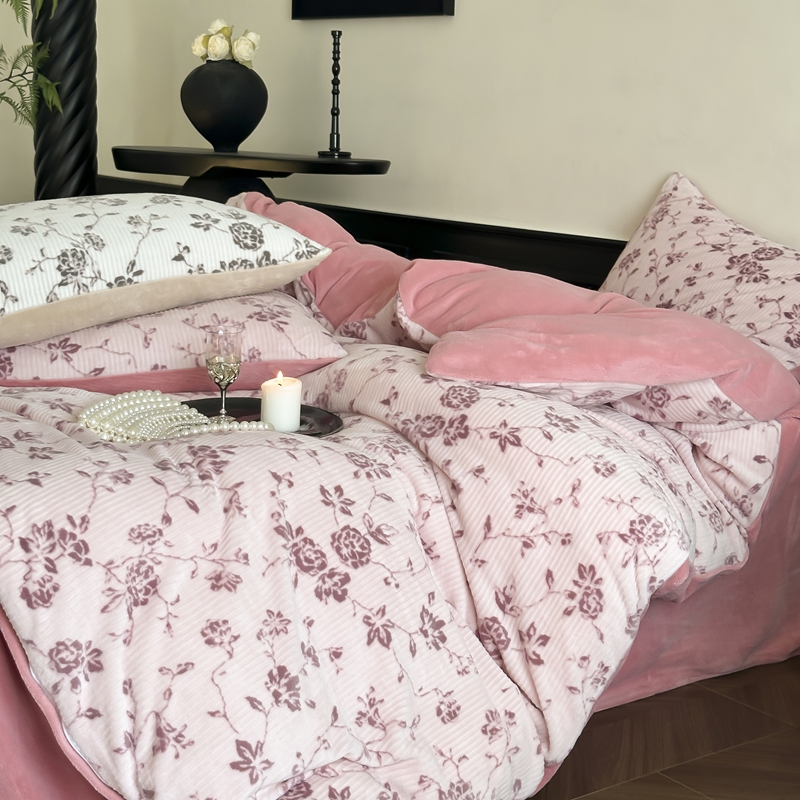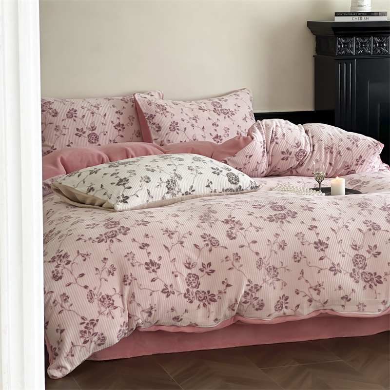 商品名称:三味舒屋 2025新款肌理印加提牛奶绒四件套-清雅 风格二 云边红叶