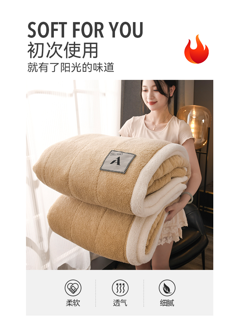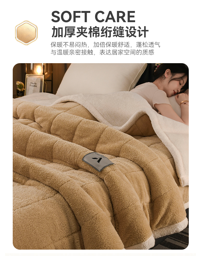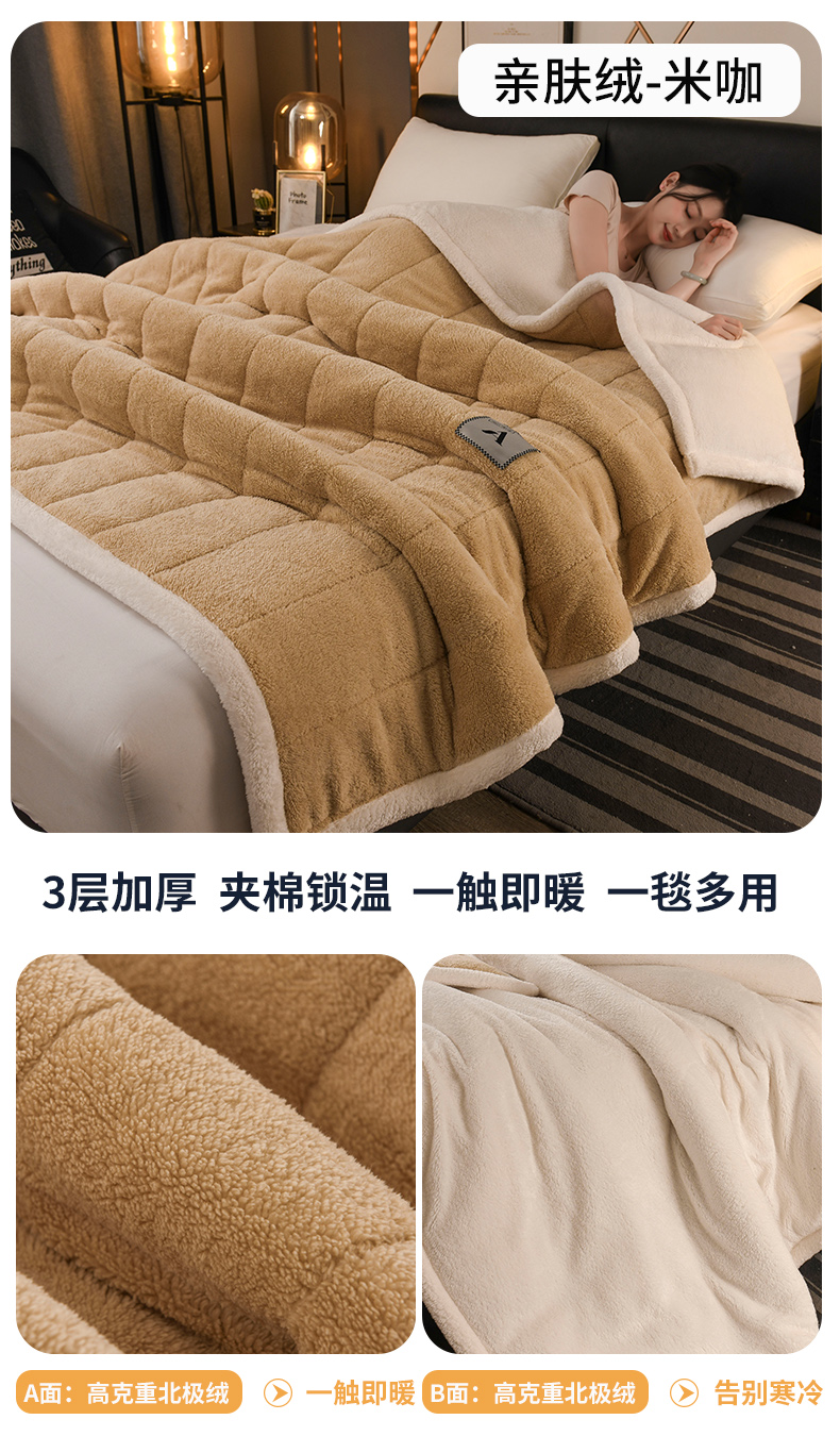 商品名称:恋绒家纺 2025新款加厚三层毛毯被牛奶绒复合毯子夹棉盖毯午睡毯子法莱绒毛毯 (亲肤绒-)-米咖