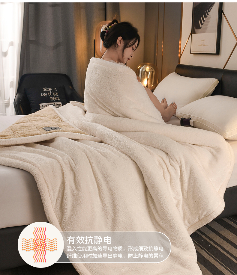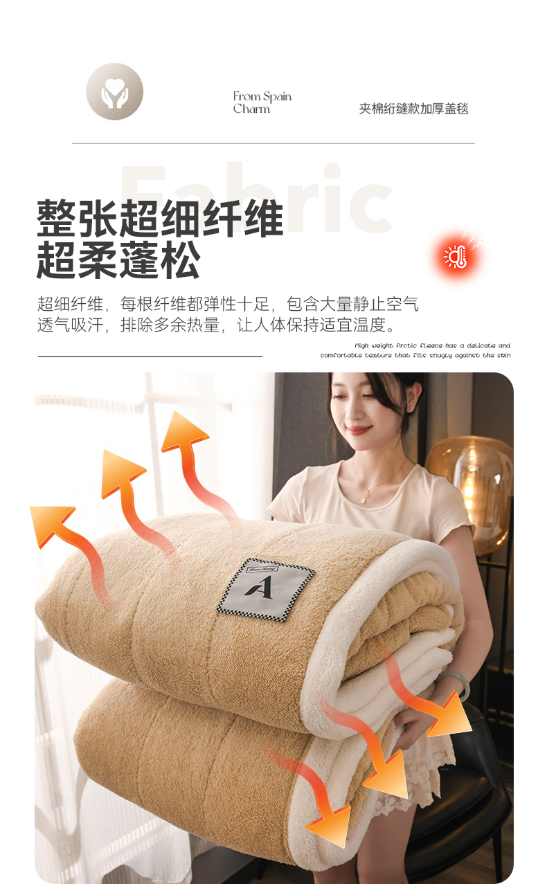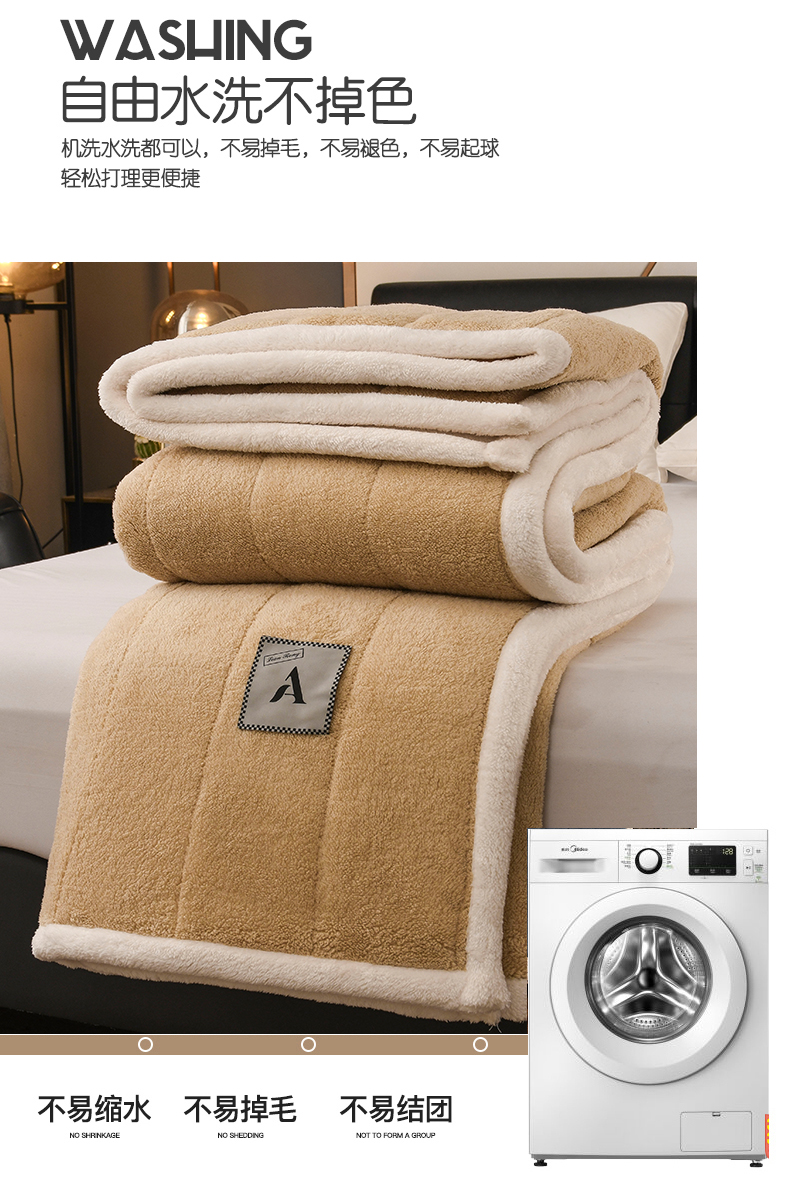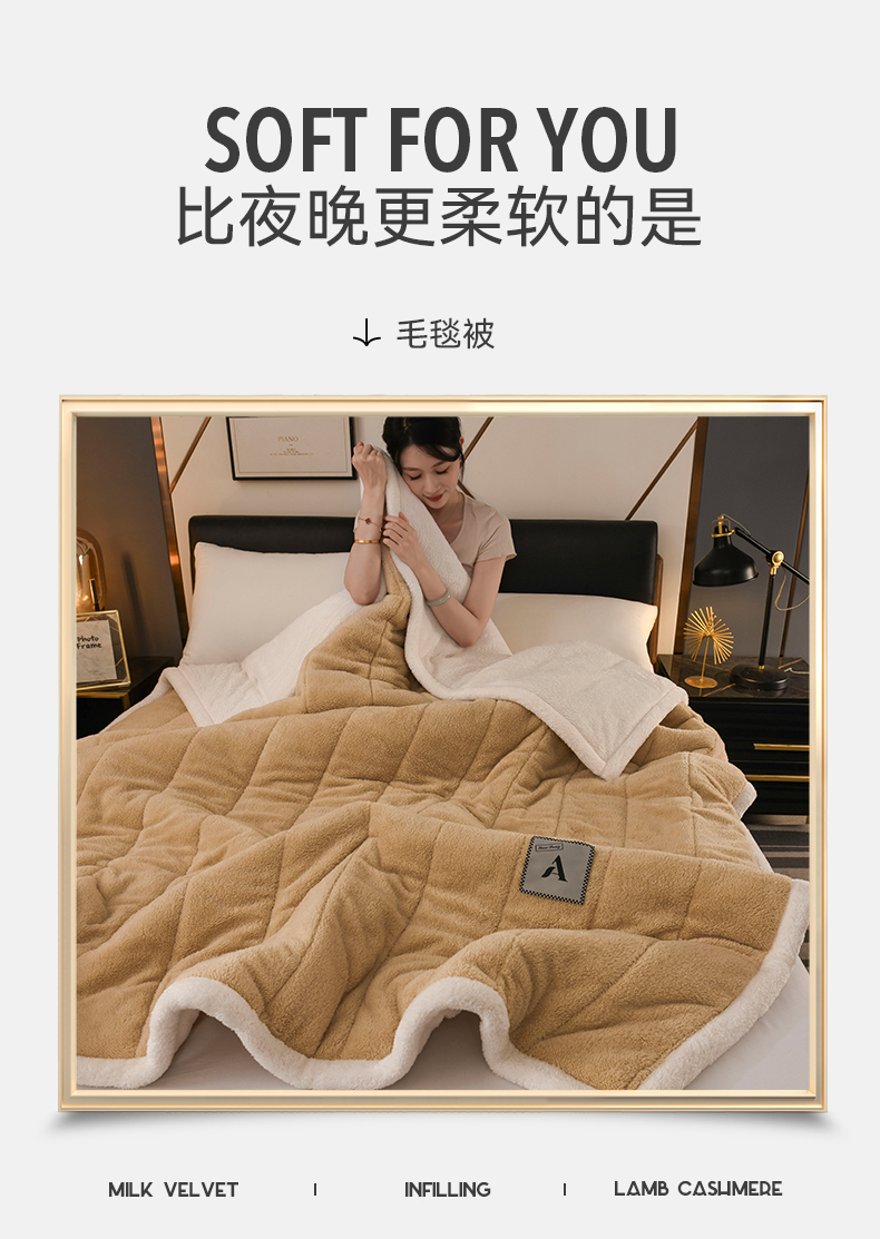 商品名称:恋绒家纺 2025新款加厚三层毛毯被牛奶绒复合毯子夹棉盖毯午睡毯子法莱绒毛毯 (亲肤绒-)-米咖