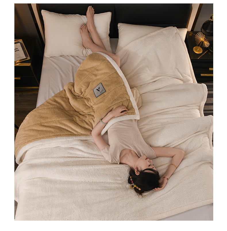 恋绒家纺 2025新款加厚三层毛毯被牛奶绒复合毯子夹棉盖毯午睡毯子法莱绒毛毯 (亲肤绒-)-米咖