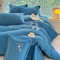 金米诺 新款韩版花边水洗棉泡泡纱四件套公主条四件套 褶皱-浅蓝,褶皱-浅蓝