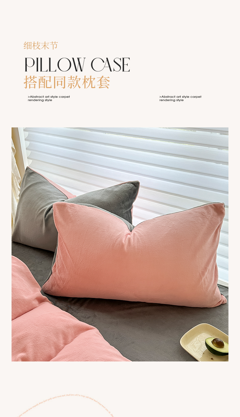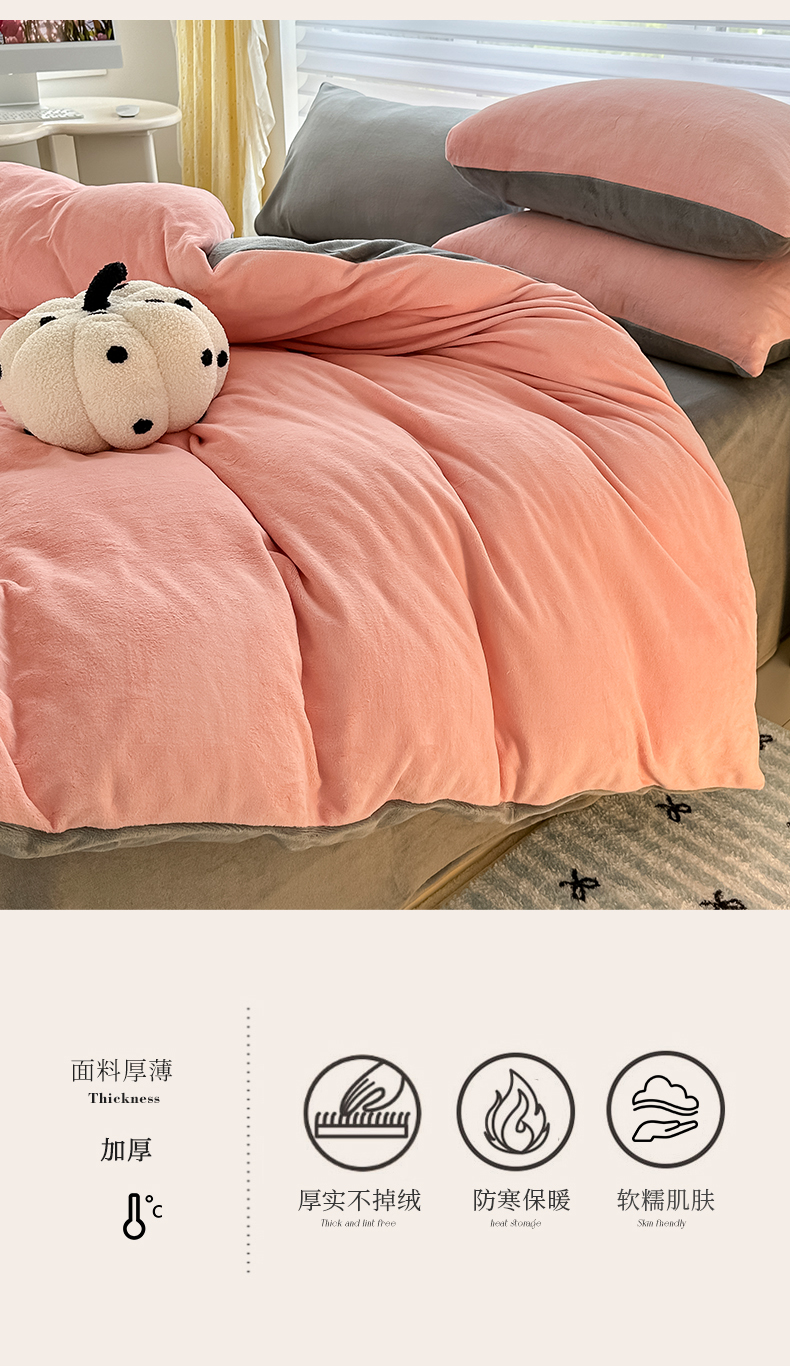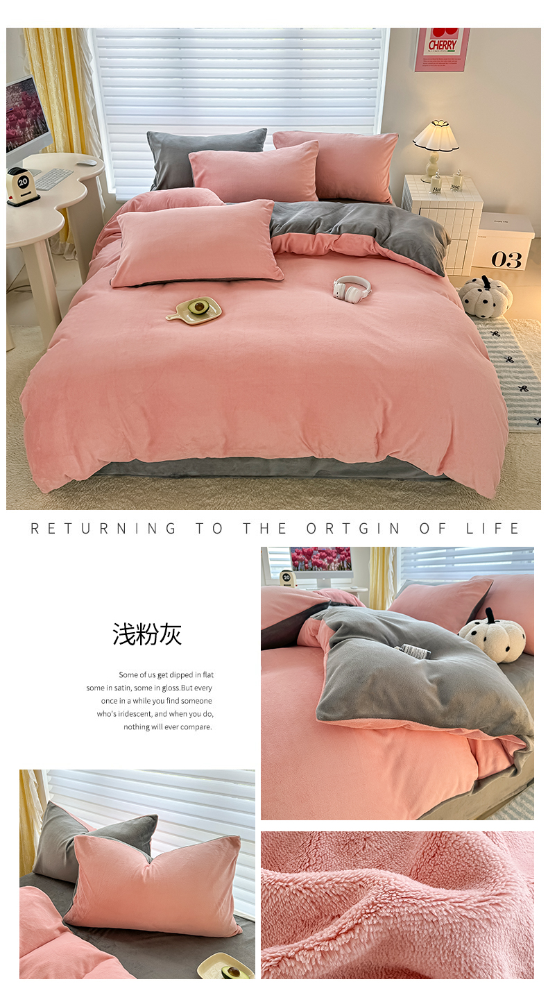 商品名称:觅妮家纺 2025新款全消光200g简约高克重秋冬加厚双拼牛奶绒单被套 浅粉灰