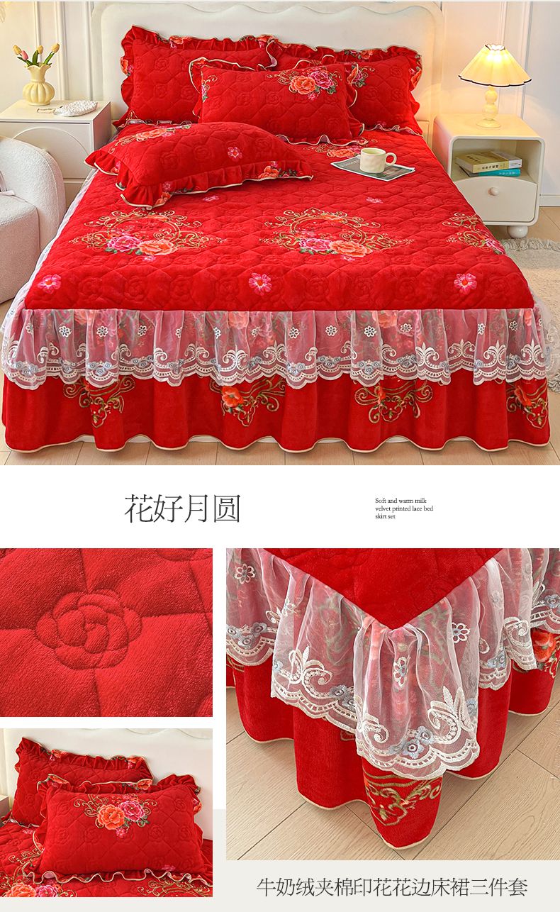 当前位置: 91家纺网 > 商品网购 > 床品套件 > 三件套 > 宜凡家纺 2024新款牛奶绒印花夹棉花边床裙三件套 心动时刻 粉