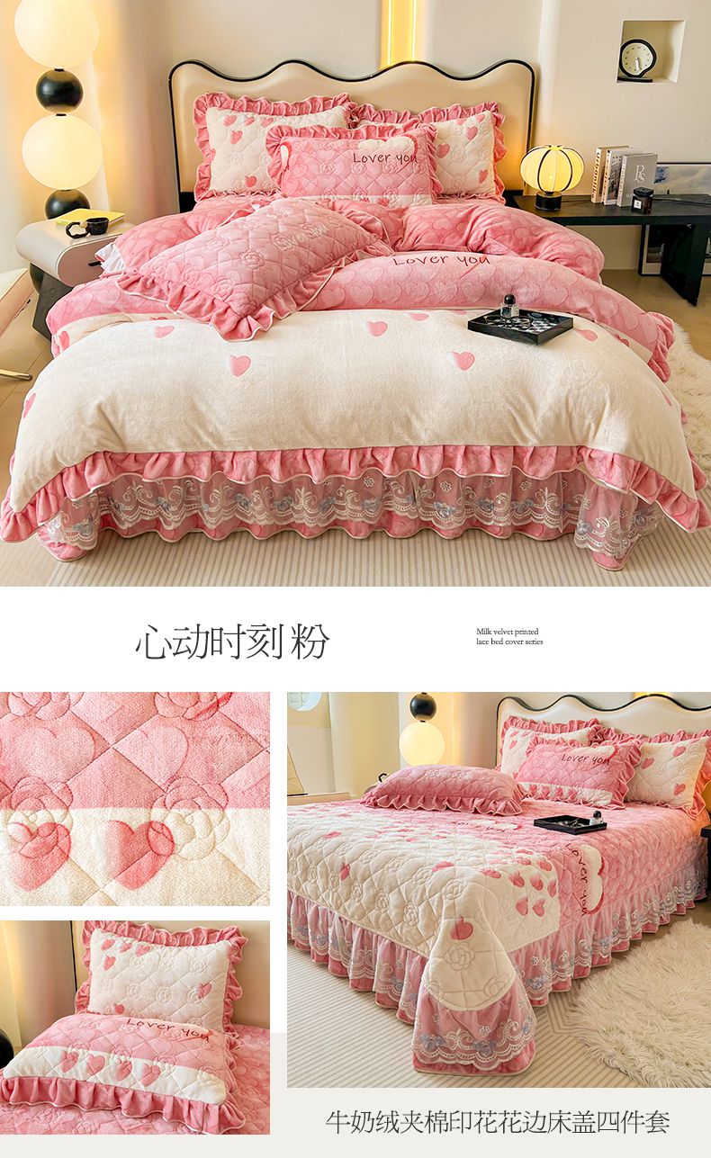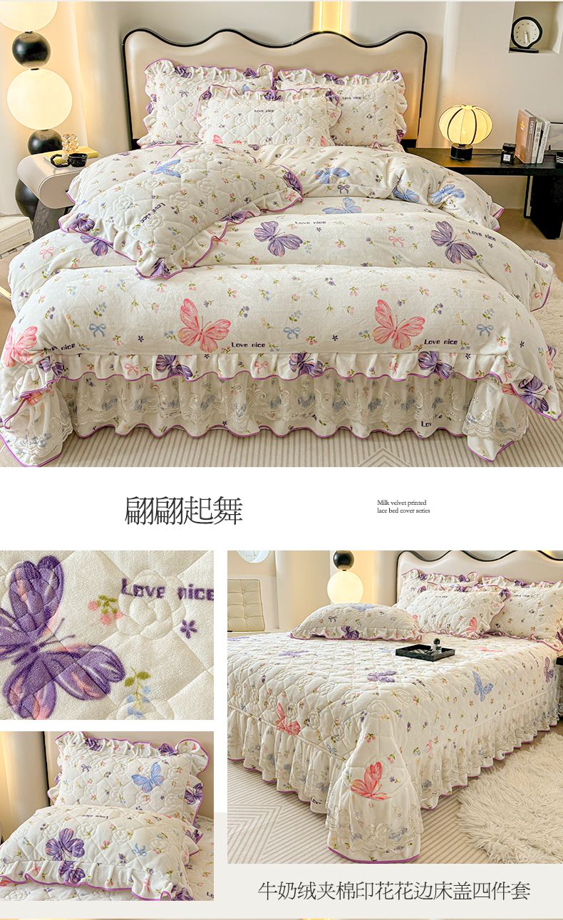 (总)宜凡家纺 2025新款兔绒提花牛奶绒夹棉床裙四件套,爱心 少女粉,爱心 粉紫,爱心 驼色,蝶舞 大红,蝶舞 米色,蝶舞 浅紫,蝶舞 玉色,简爱 苍青,简爱 豆沙紫,简爱 玉色,樱桃 苍青,樱桃 豆沙紫,樱桃 奶油白