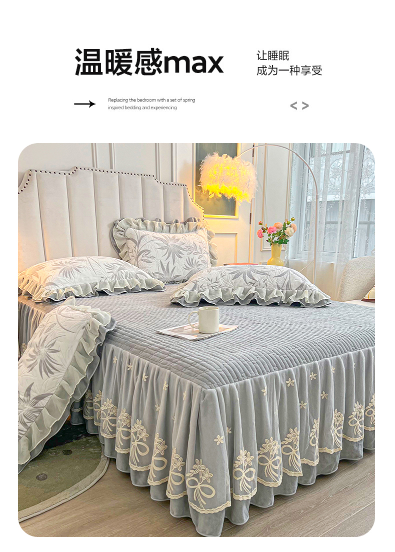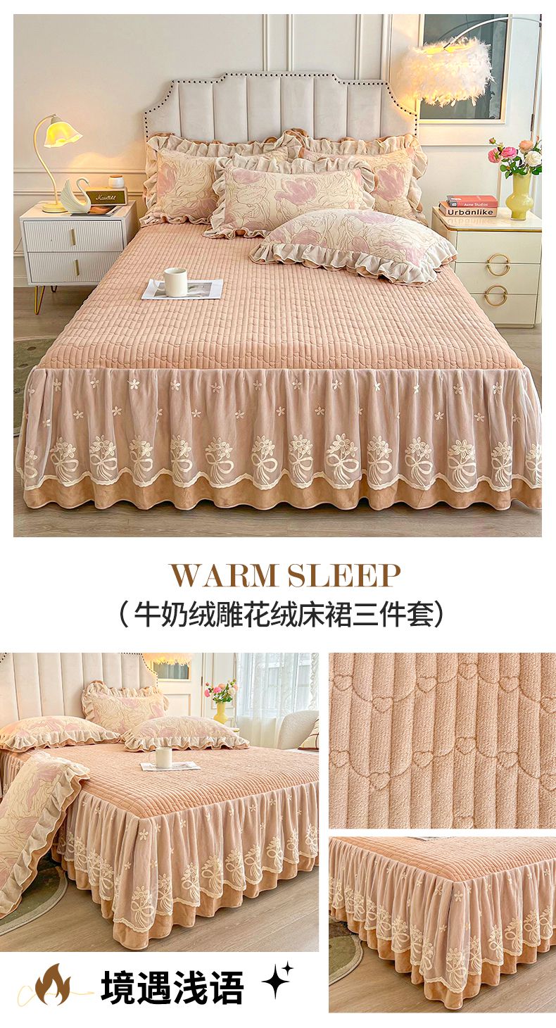 当前位置: 91家纺网 > 商品网购 > 床品套件 > 三件套 > 宜凡家纺 2024新款牛奶绒雕花绒床裙三件套 山水韵律