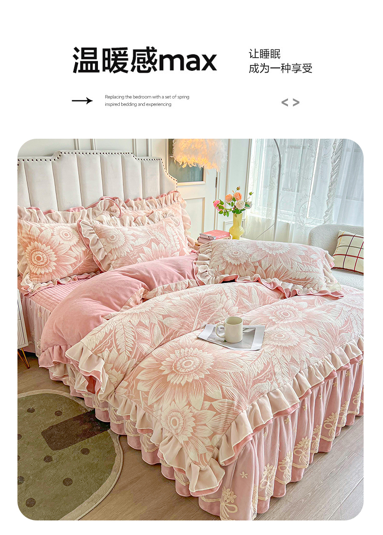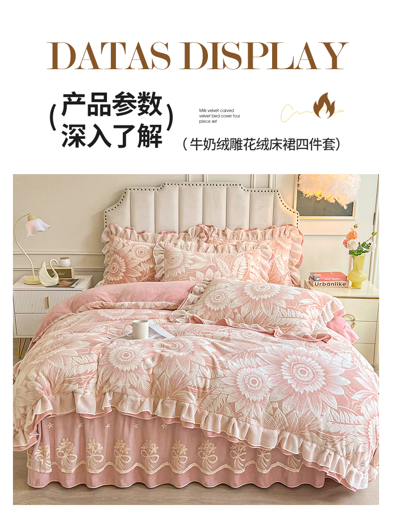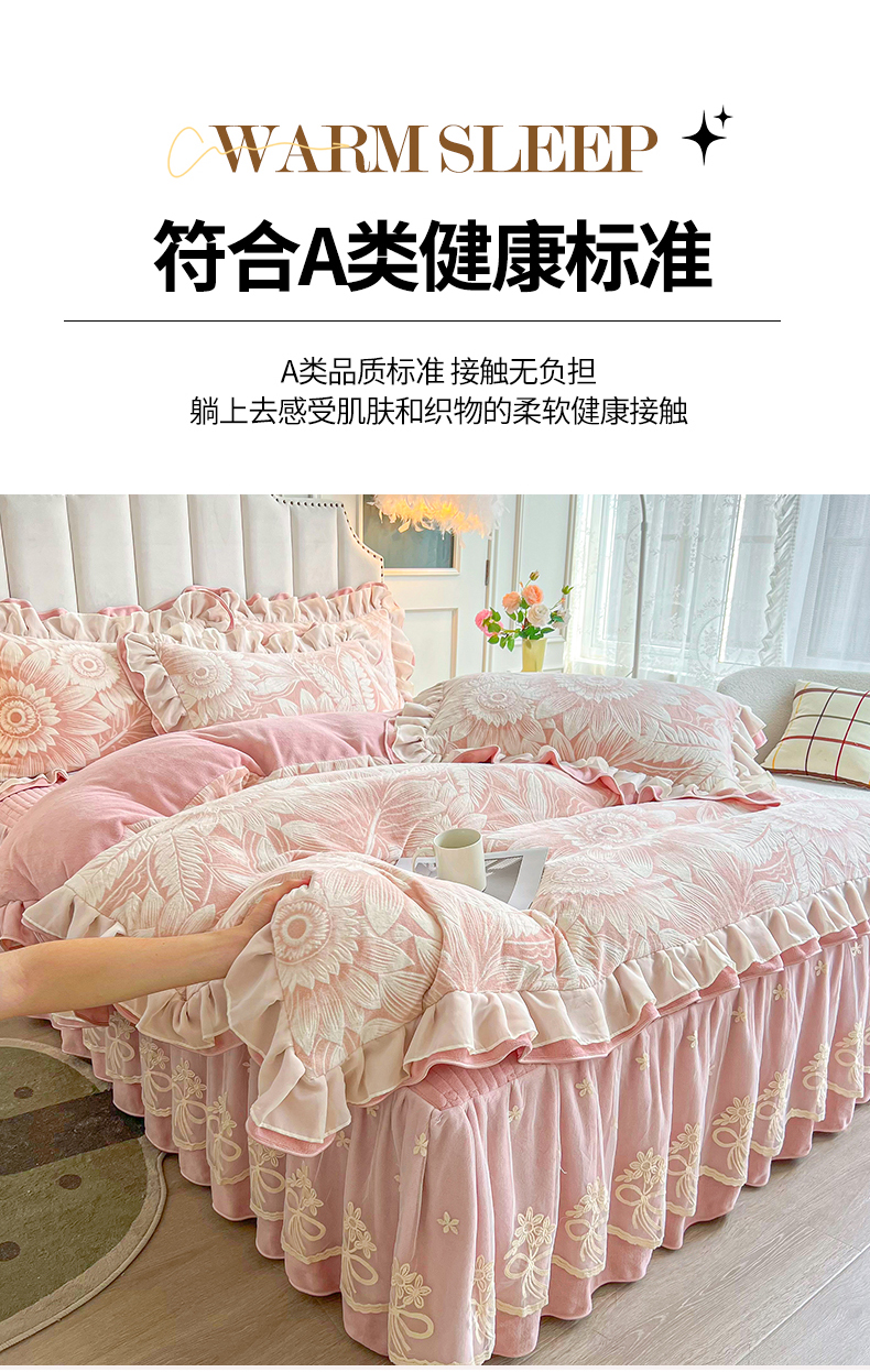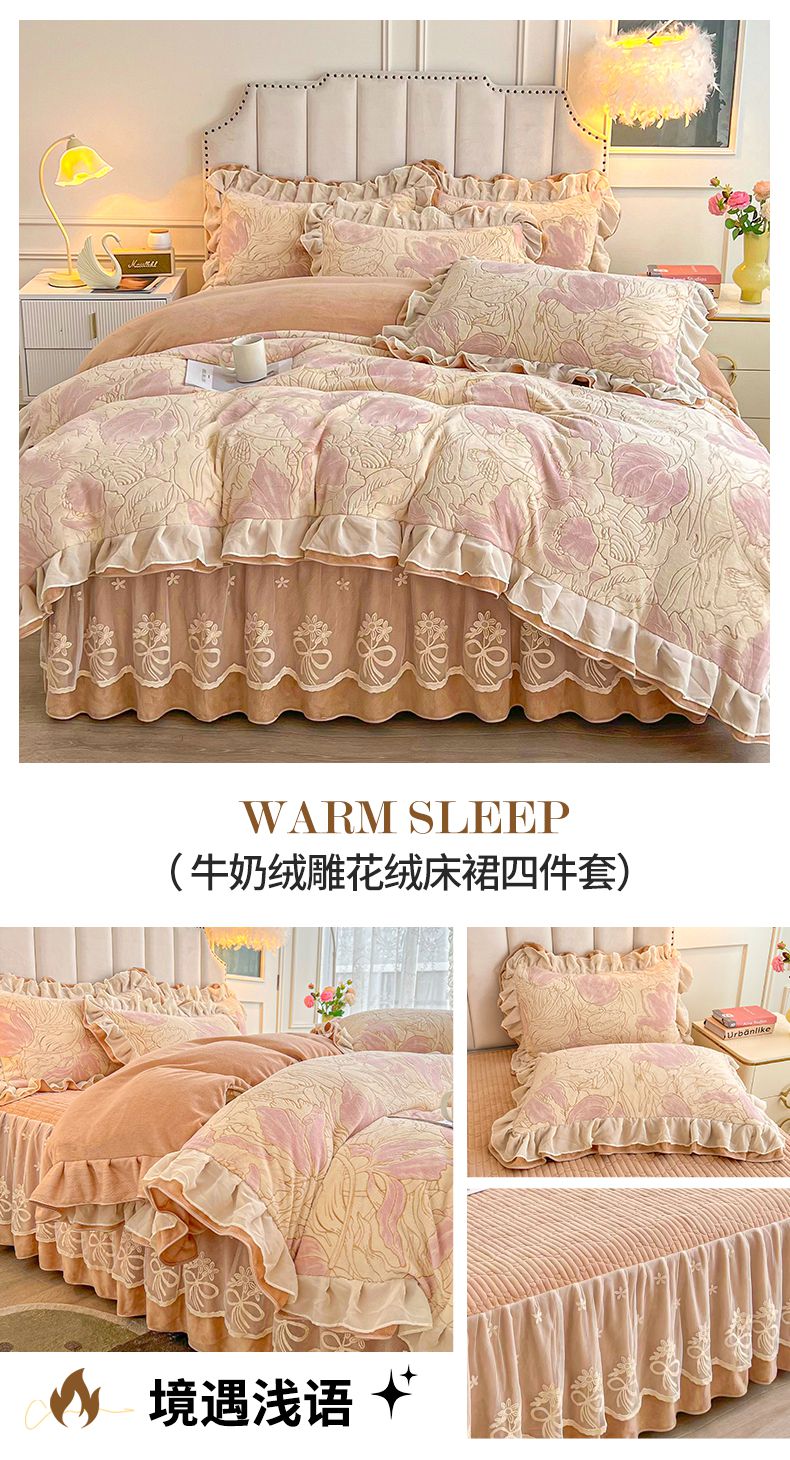 商品名称:宜凡家纺 2024新款牛奶绒雕花绒床裙四件套 海棠花开