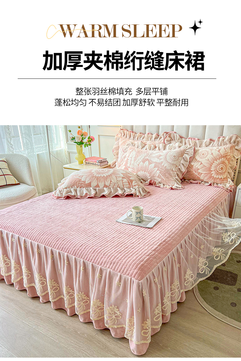 (总)宜凡家纺 2025新款兔绒提花牛奶绒夹棉床裙四件套,爱心 少女粉,爱心 粉紫,爱心 驼色,蝶舞 大红,蝶舞 米色,蝶舞 浅紫,蝶舞 玉色,简爱 苍青,简爱 豆沙紫,简爱 玉色,樱桃 苍青,樱桃 豆沙紫,樱桃 奶油白