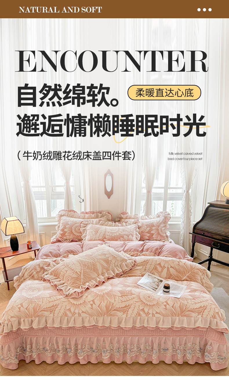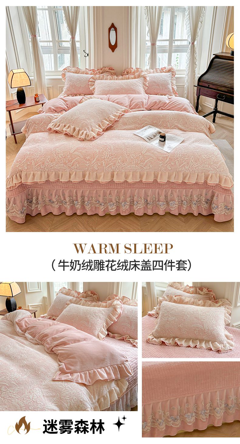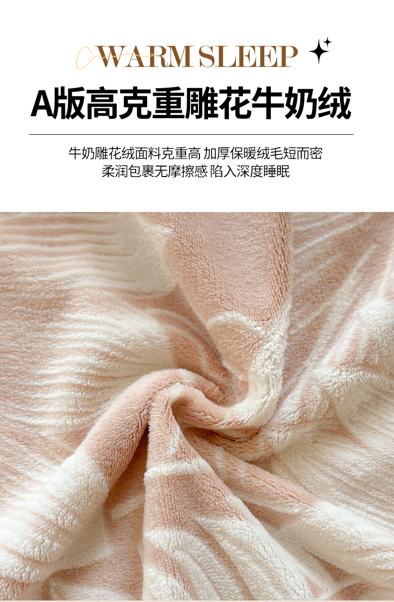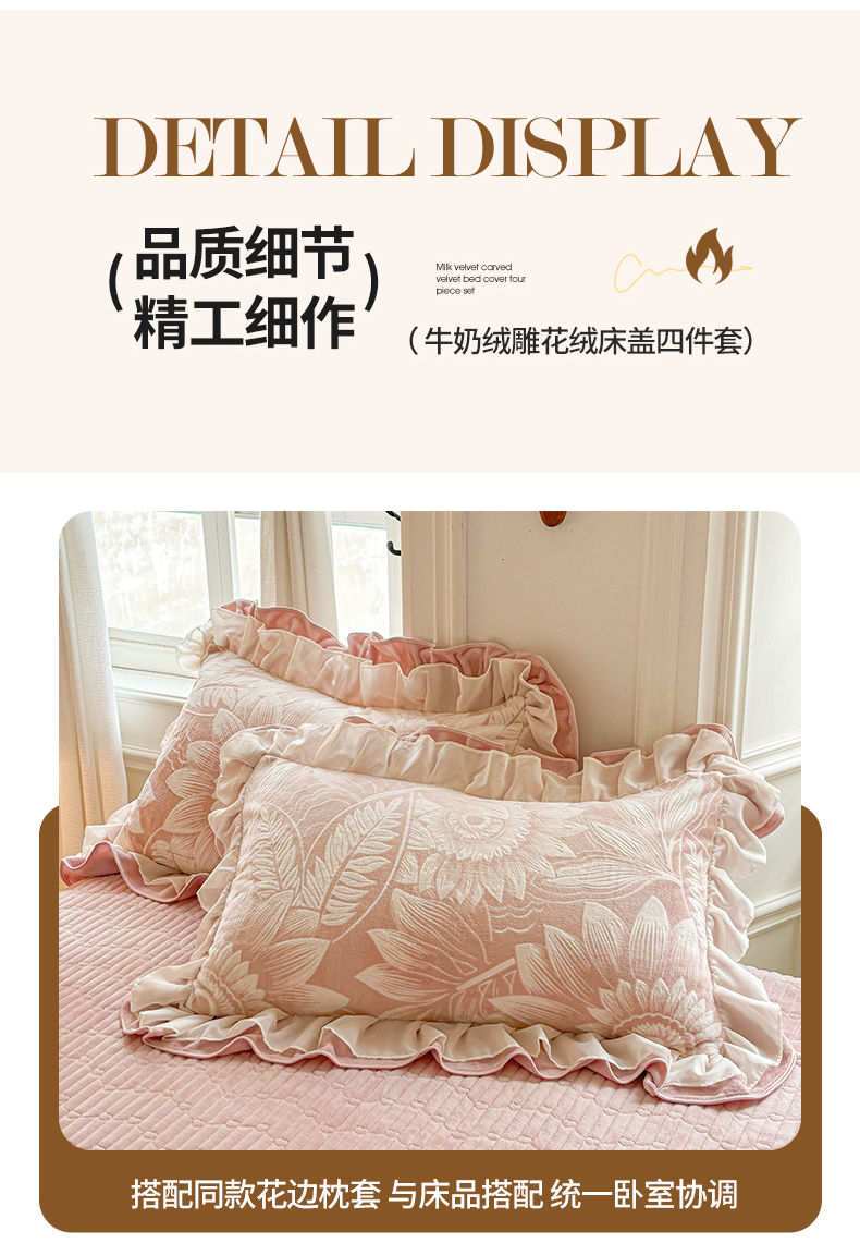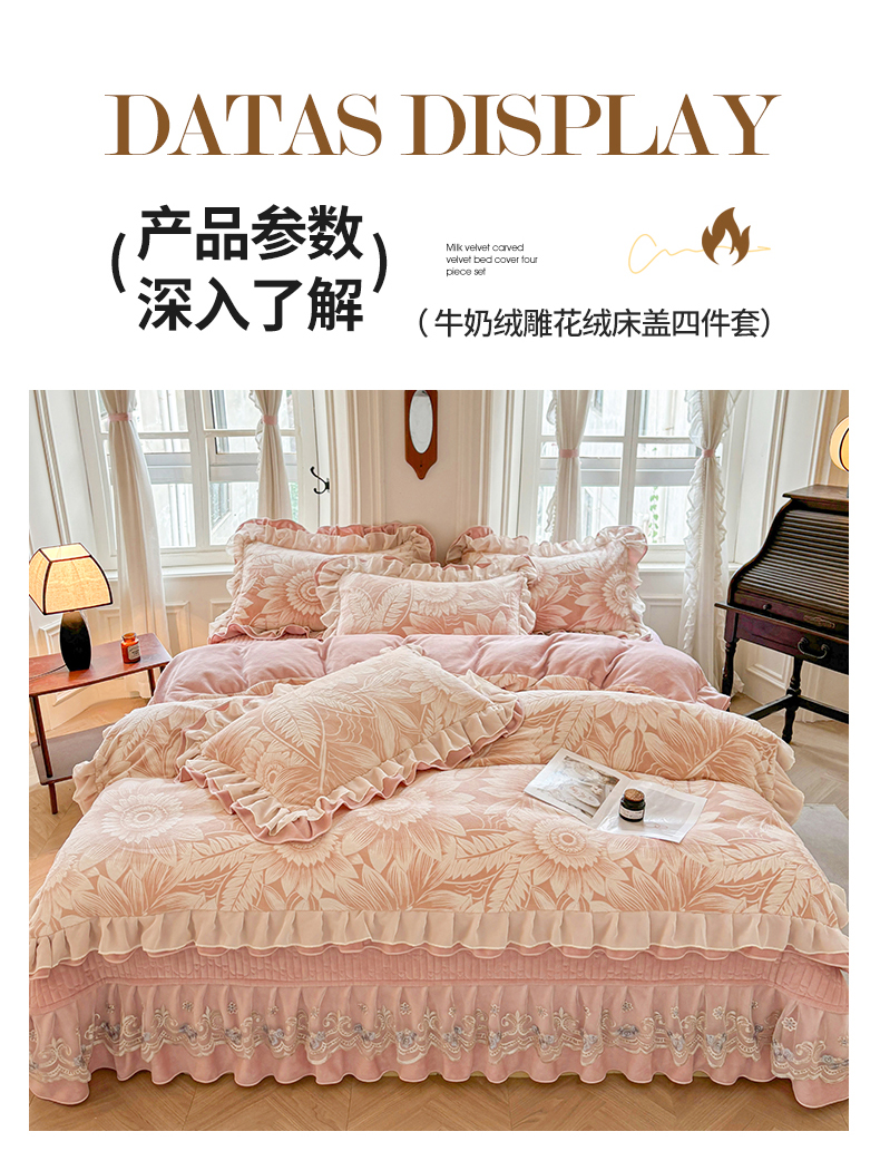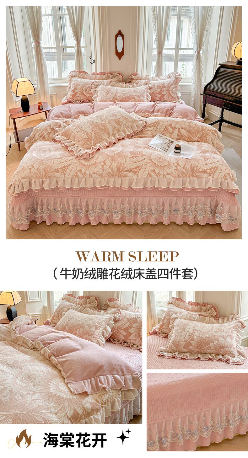 商品名称:宜凡家纺 2024新款牛奶绒雕花绒床盖四件套 海棠花开