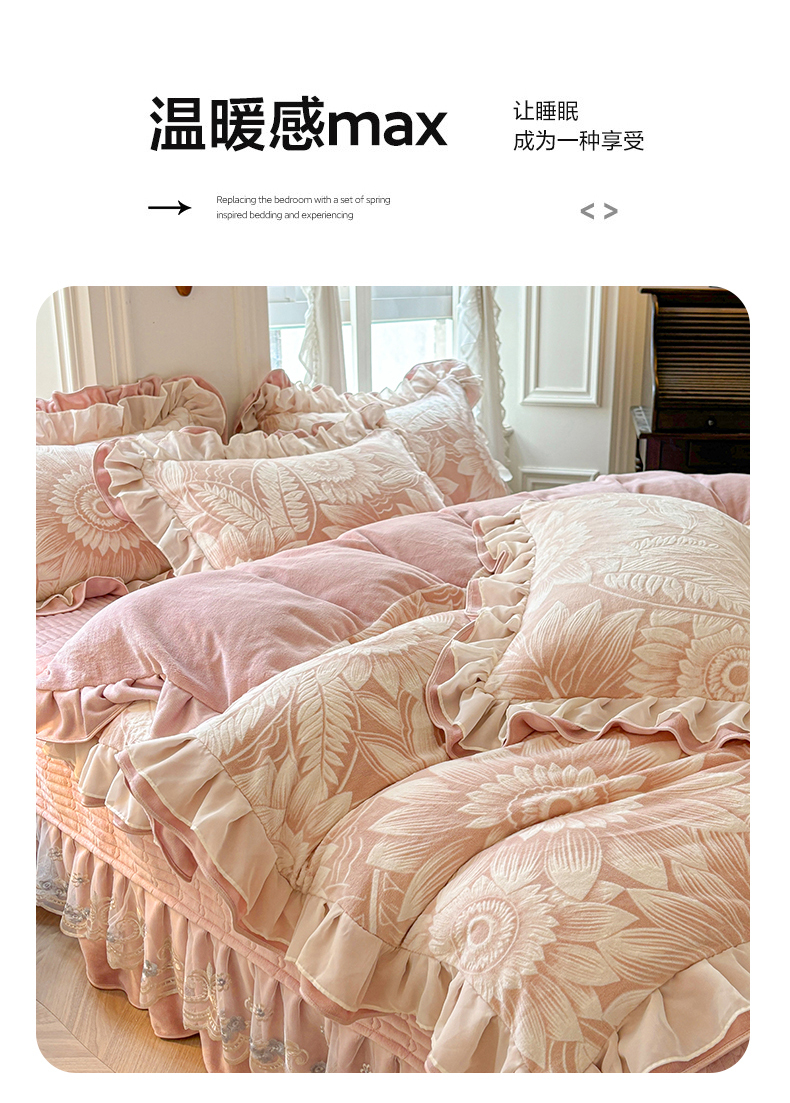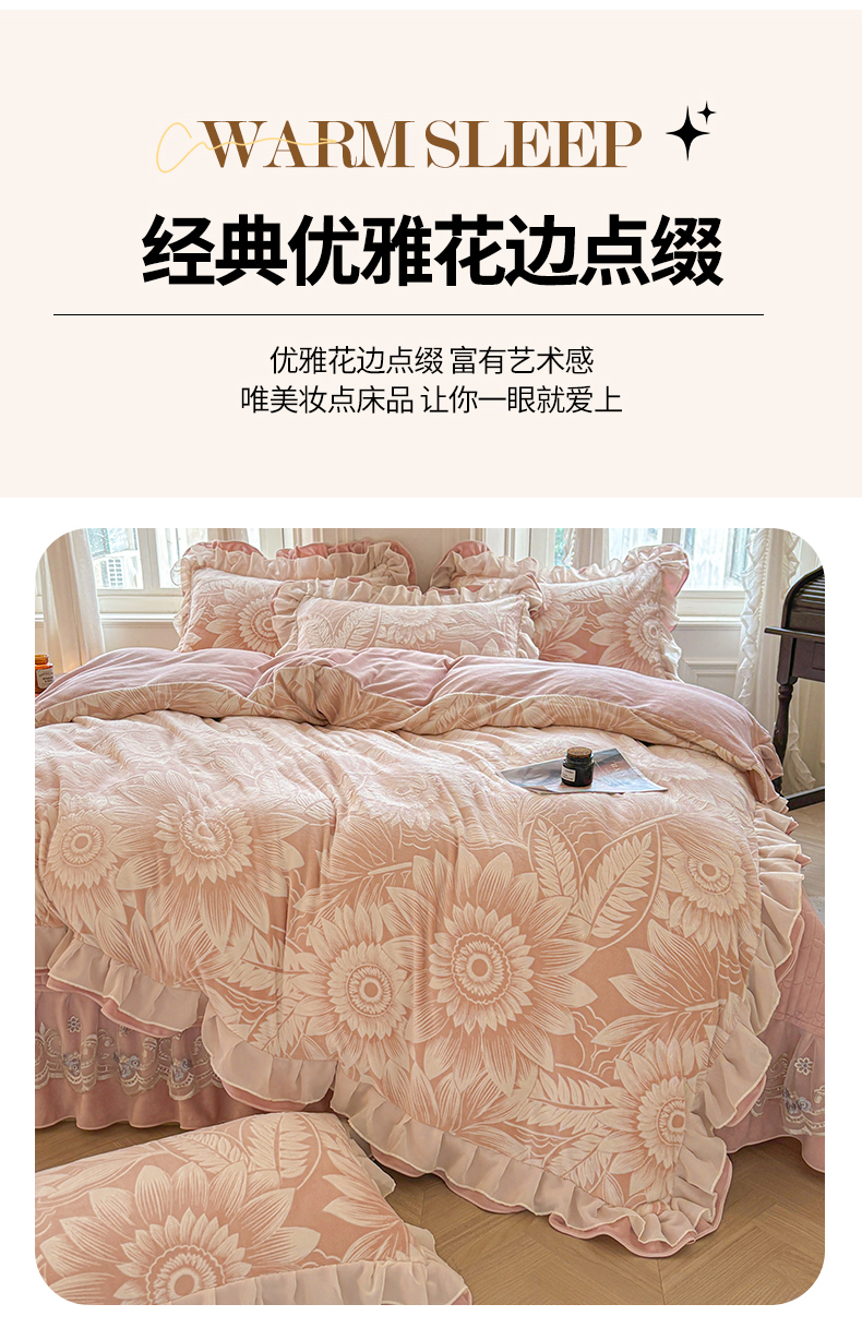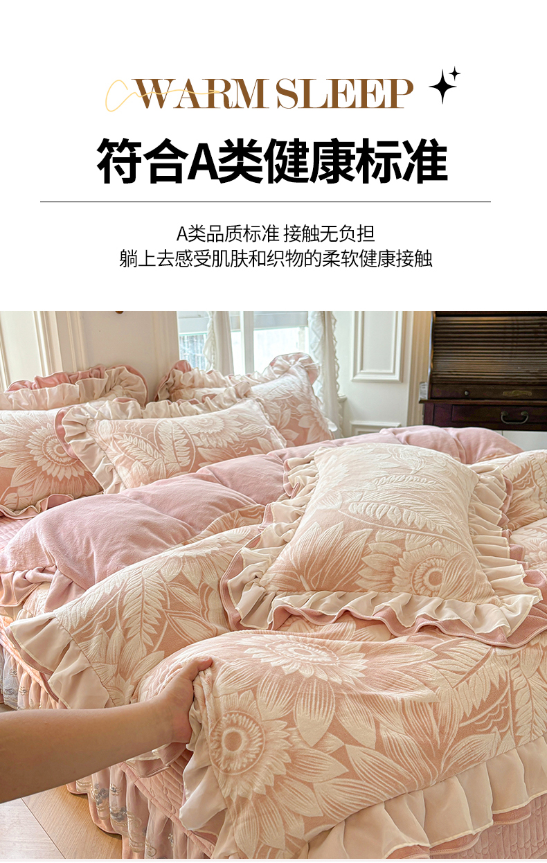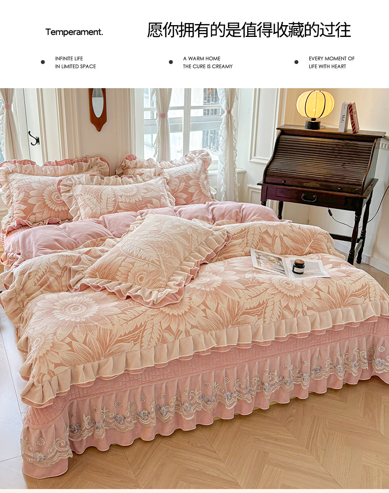 (总)宜凡家纺 2025新款兔绒提花牛奶绒夹棉床裙四件套,爱心 少女粉,爱心 粉紫,爱心 驼色,蝶舞 大红,蝶舞 米色,蝶舞 浅紫,蝶舞 玉色,简爱 苍青,简爱 豆沙紫,简爱 玉色,樱桃 苍青,樱桃 豆沙紫,樱桃 奶油白