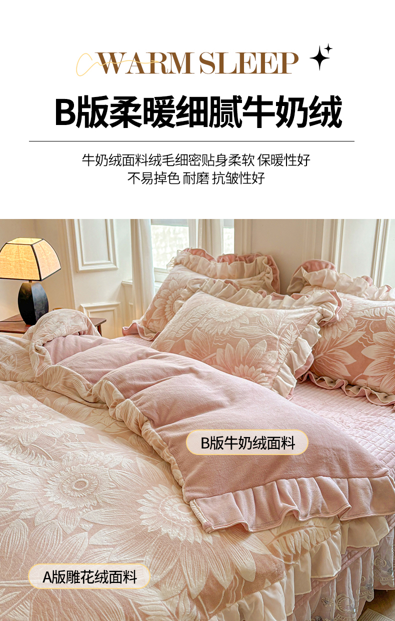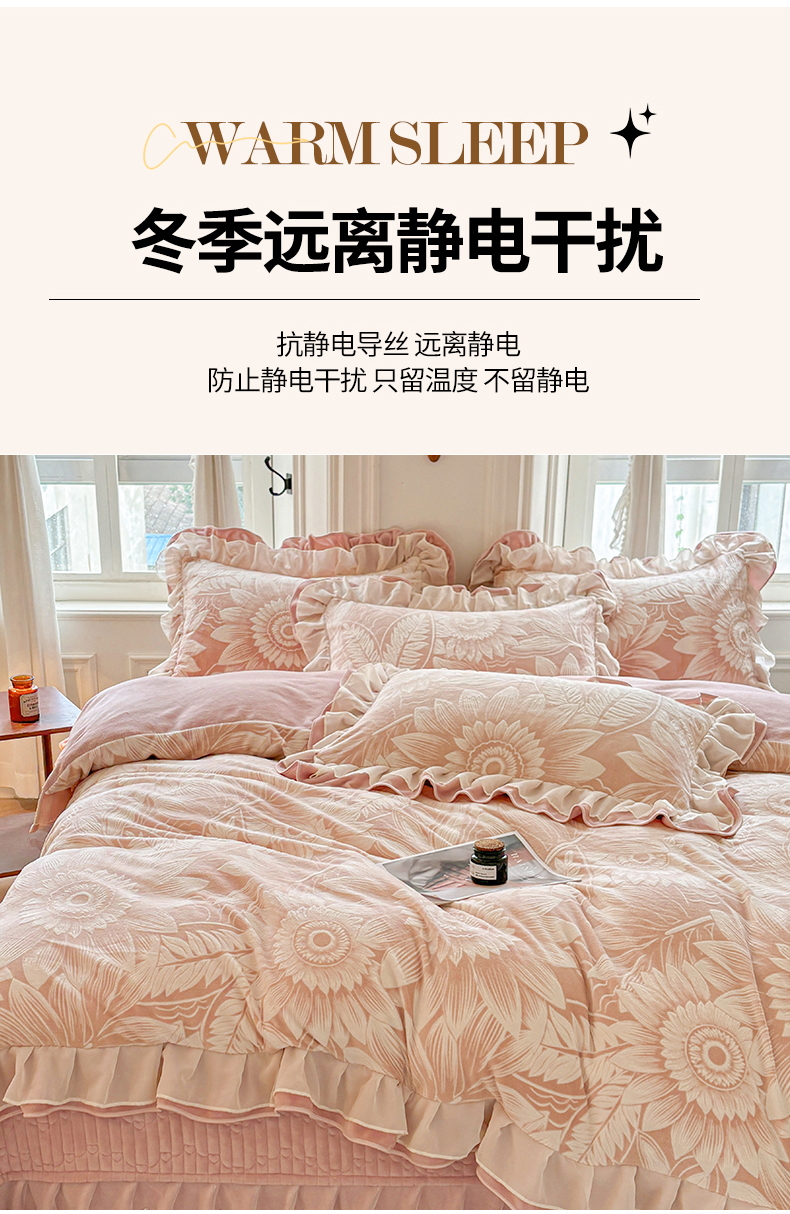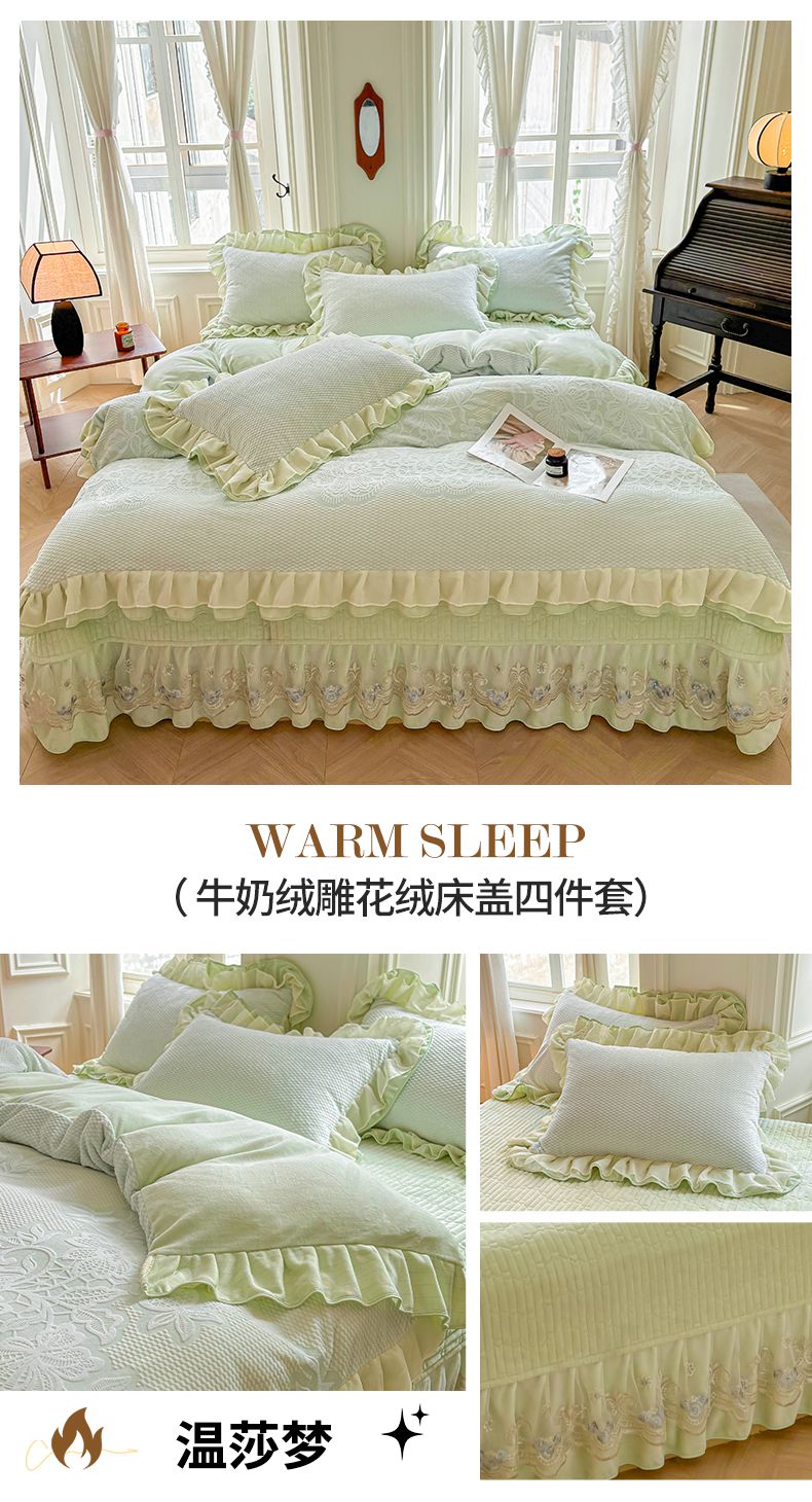 (总)宜凡家纺 2025新款兔绒提花牛奶绒夹棉床裙四件套,爱心 少女粉,爱心 粉紫,爱心 驼色,蝶舞 大红,蝶舞 米色,蝶舞 浅紫,蝶舞 玉色,简爱 苍青,简爱 豆沙紫,简爱 玉色,樱桃 苍青,樱桃 豆沙紫,樱桃 奶油白