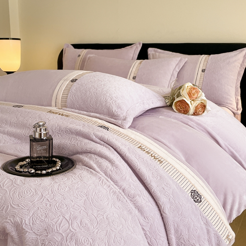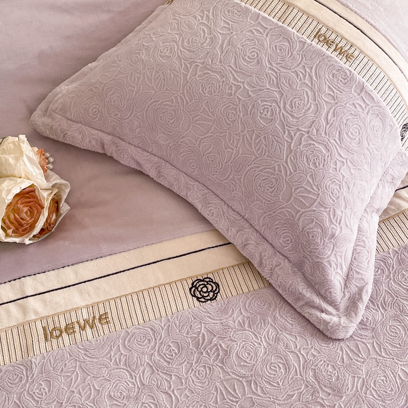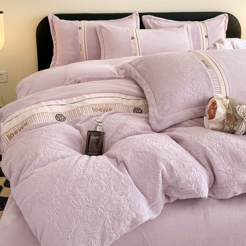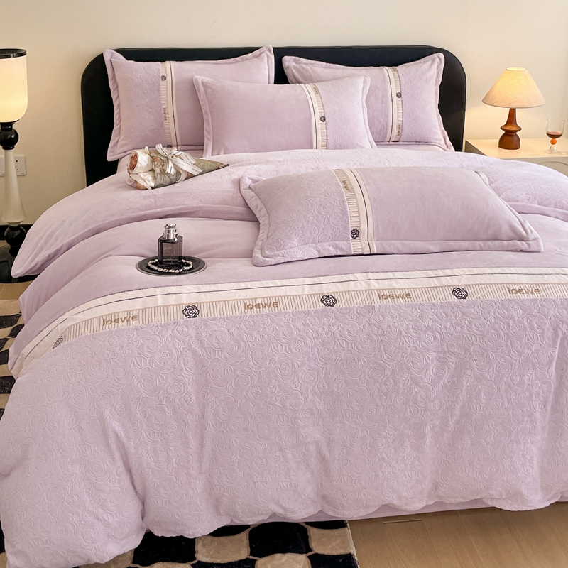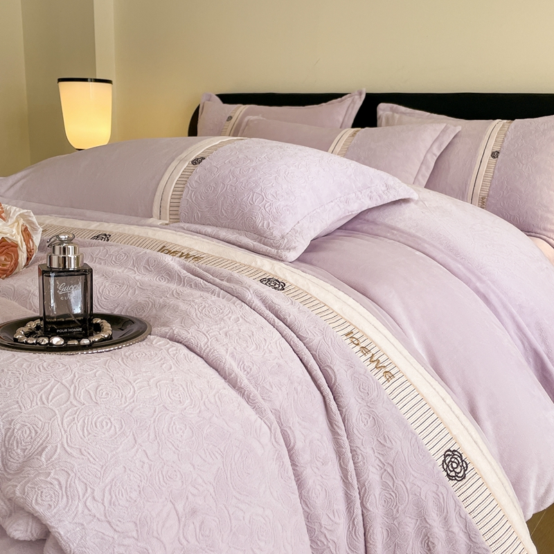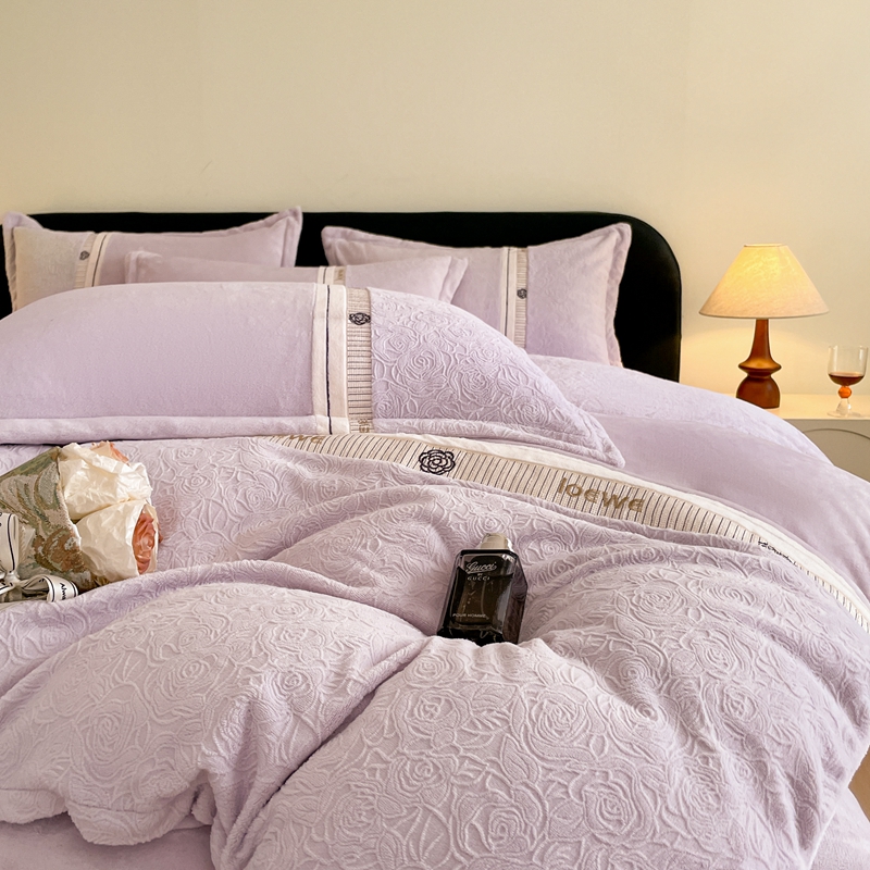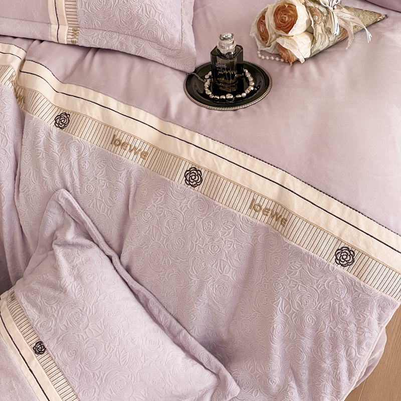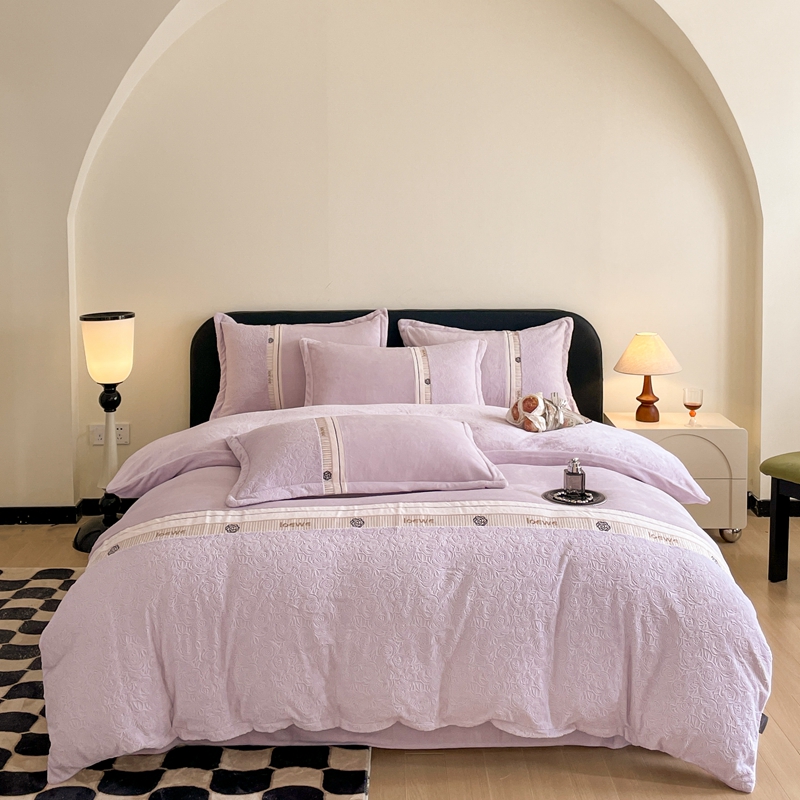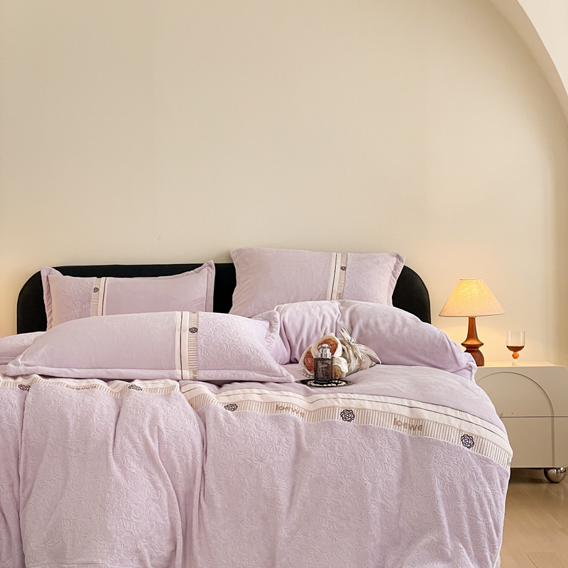 商品名称:慕木家纺 2025新款A类高克重华夫格立体剪花花绒牛奶绒被套四件套-罗马假日 罗马假日-浅紫