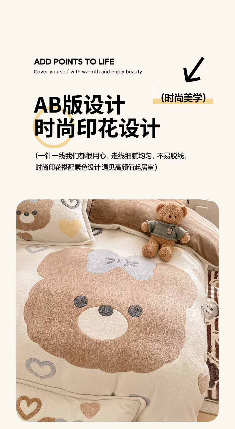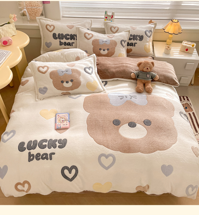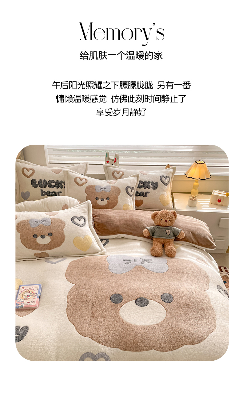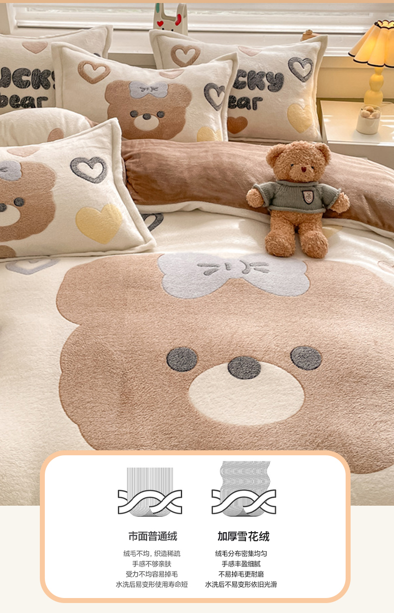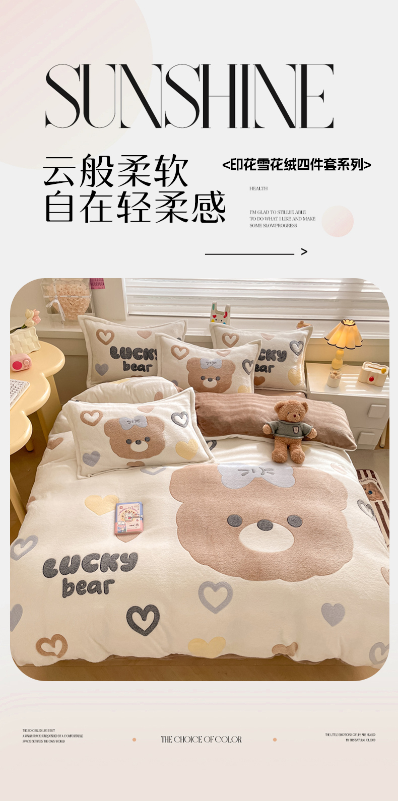 川悦生活 2024新款大版雪花绒四件套-风格二 好运熊宝