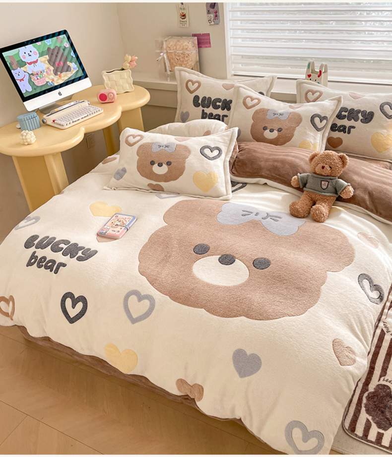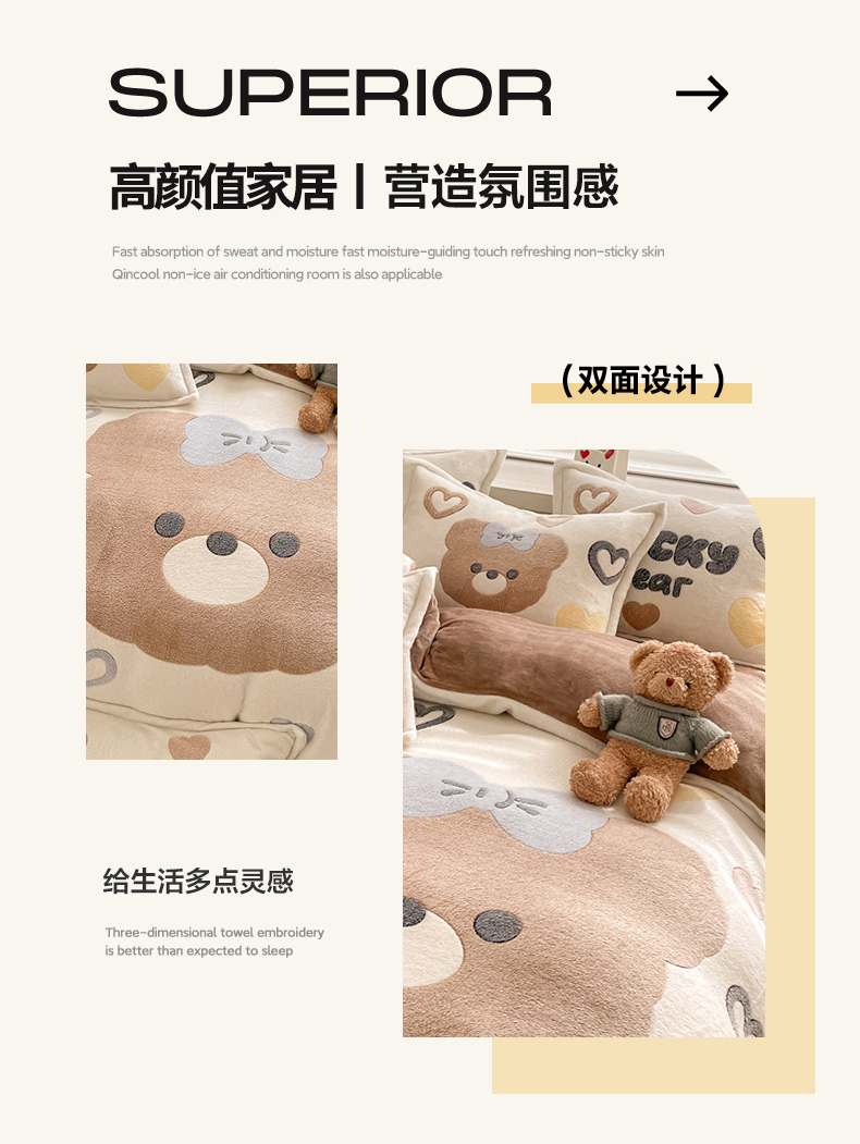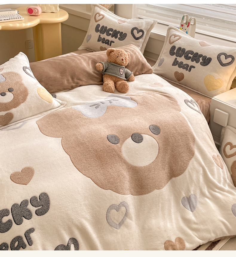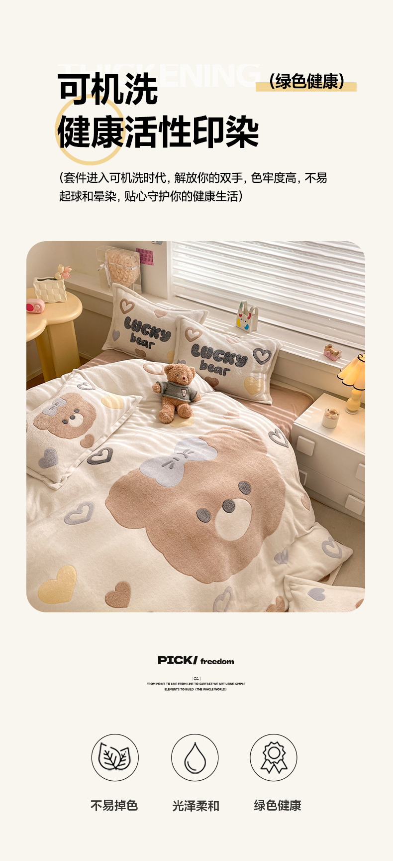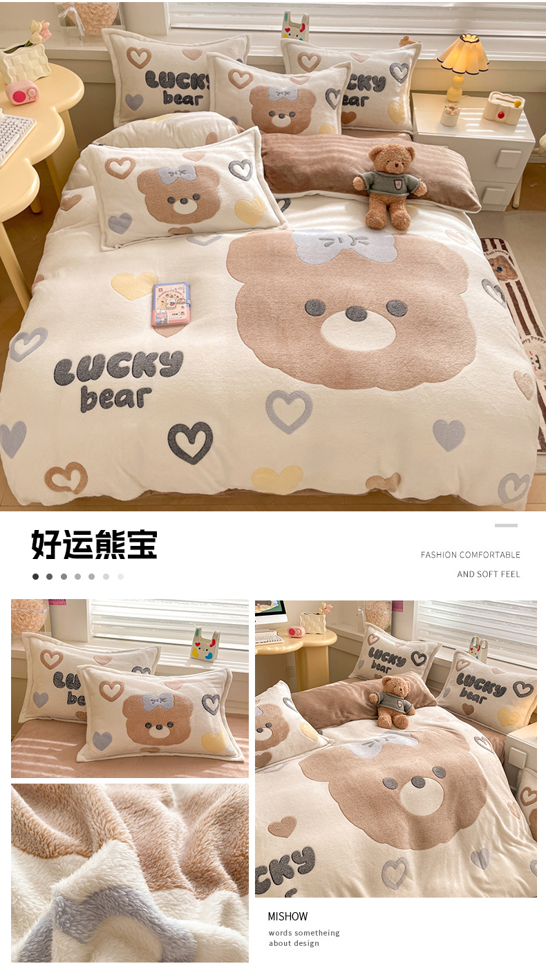 川悦生活 2024新款大版雪花绒四件套-风格二 好运熊宝