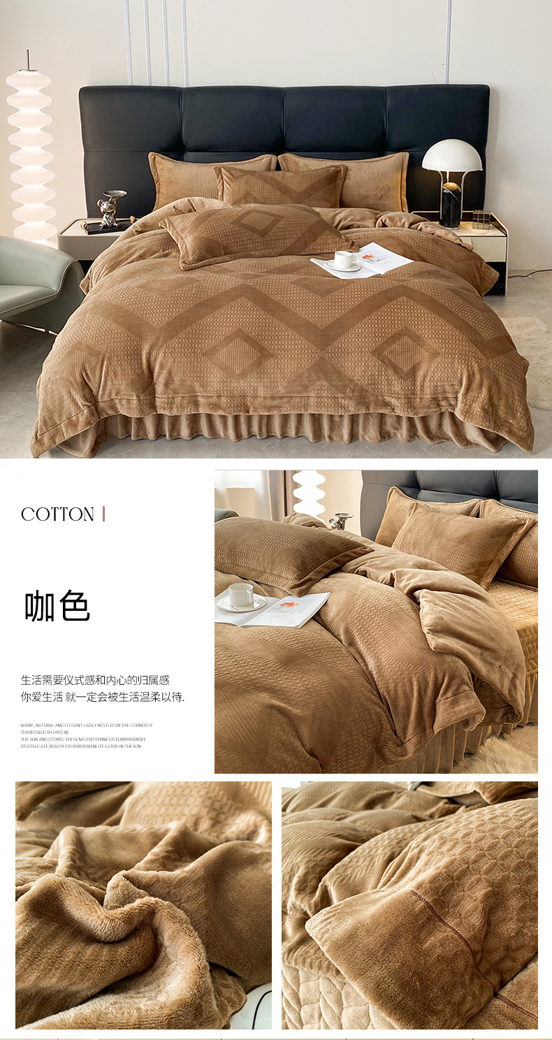 (总)美伦美焕 2025新款加厚雕花绒床盖款四件套-浅叶,浅叶-粉玉,浅叶-卡其,浅叶-绅士灰,浅叶-蔚蓝,浅叶-胭脂红