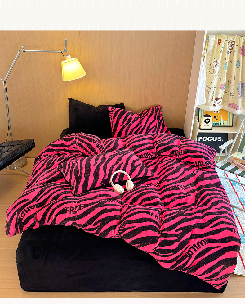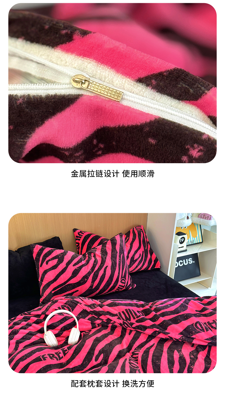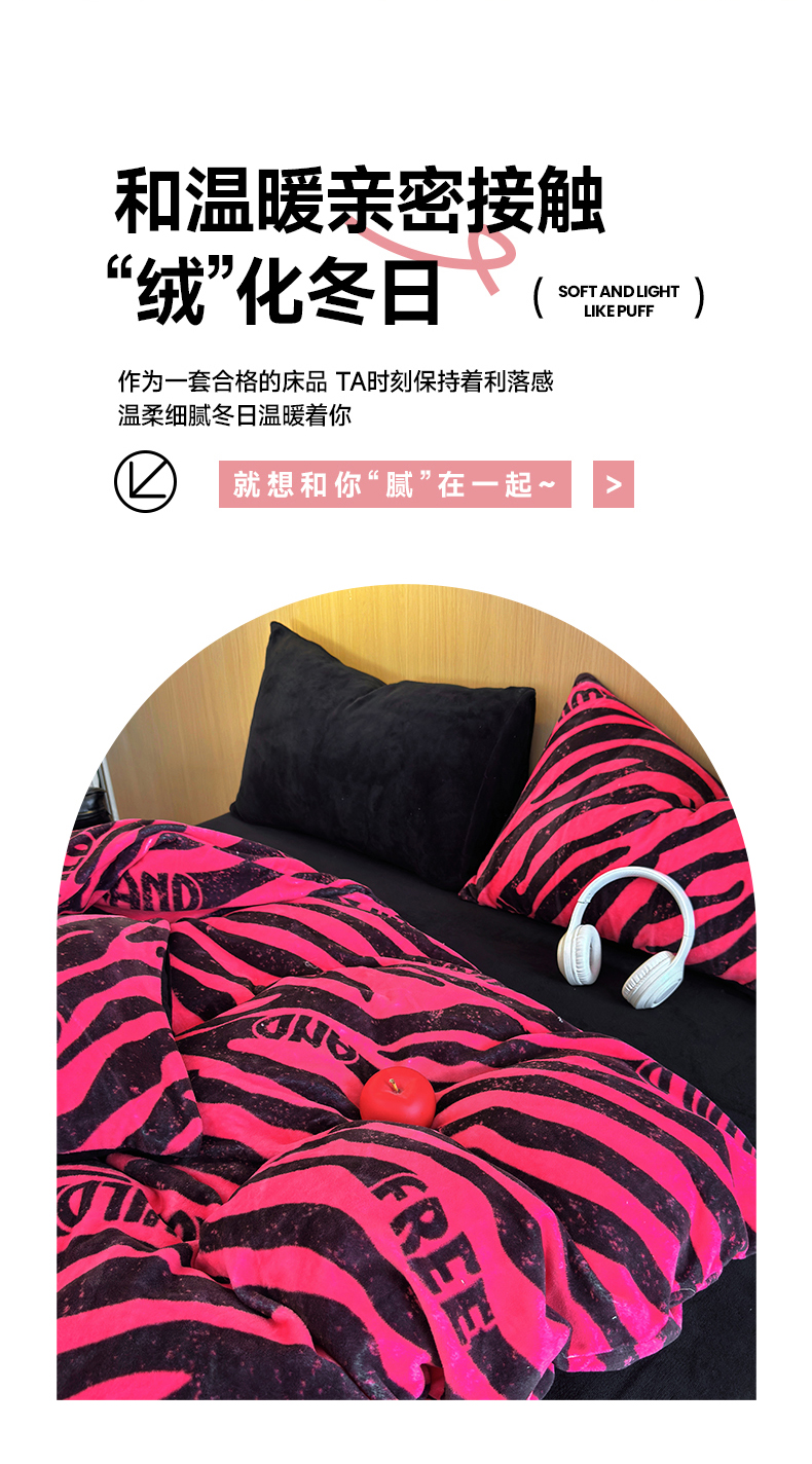 春光里 2024新款牛奶绒印花混搭四件套 甜酷斑纹